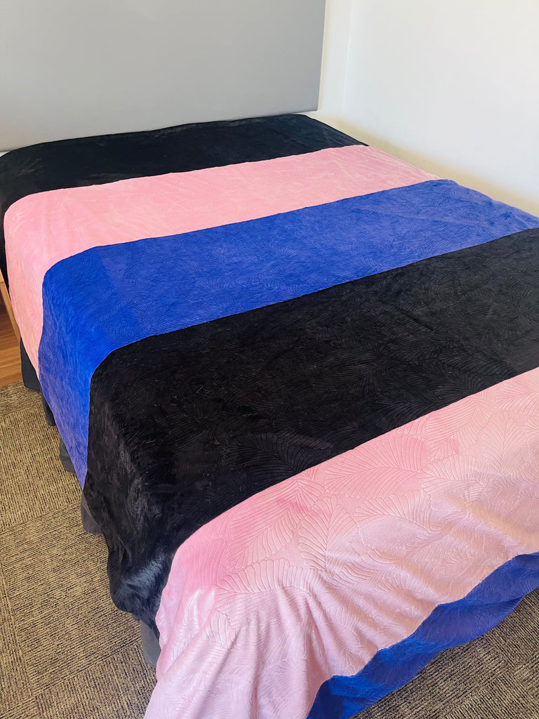 Handmade by NMC Designs in Utah, with Shannon Fabrics new Lightweight and super silky Tropic Fabric. Can be used as a top sheet in the winter and comforter in the Summer! Wash with small amount of detergent, no fabric softener, hang to dry or air fluff. No Heat. Sizes are approximate.