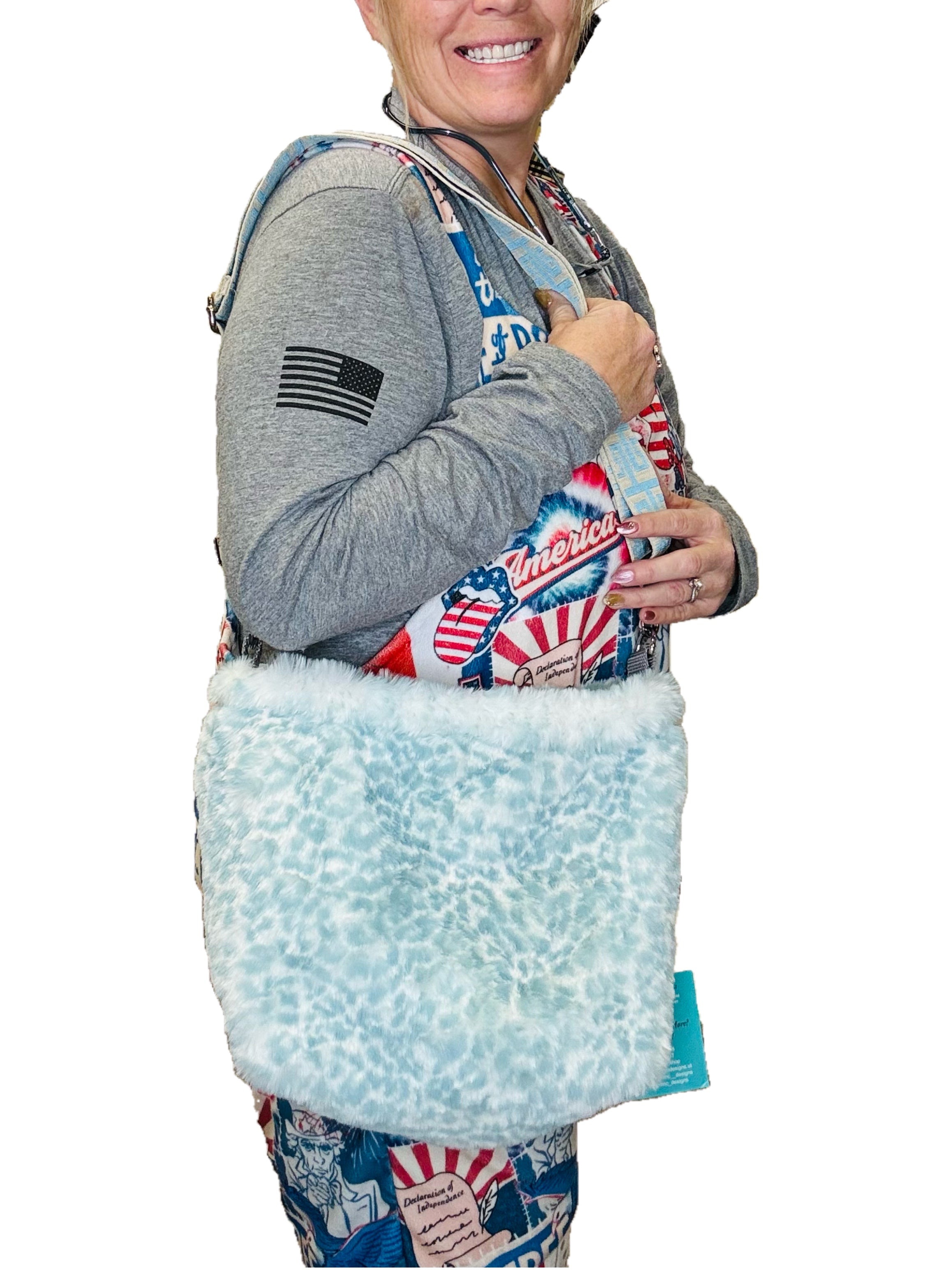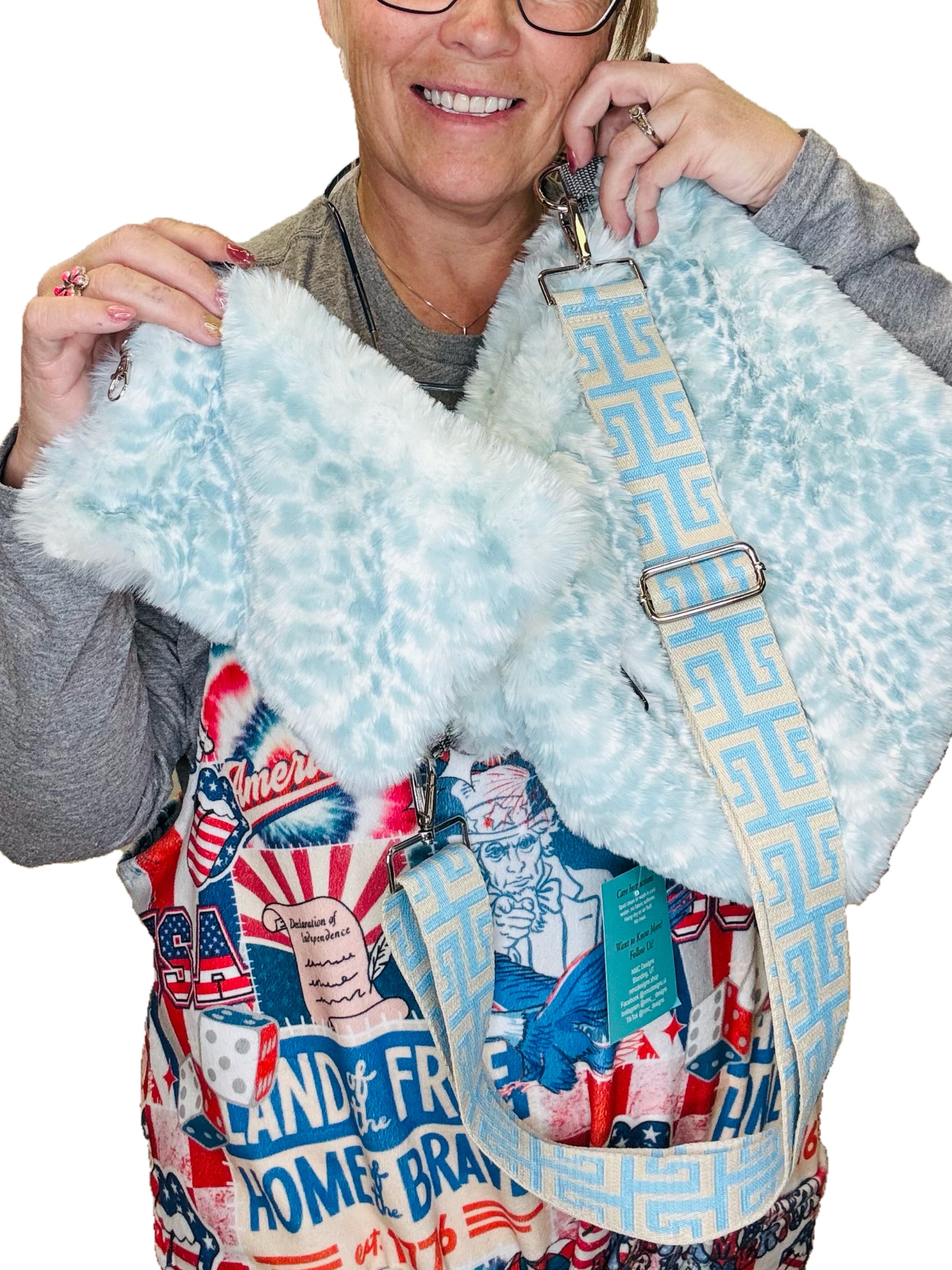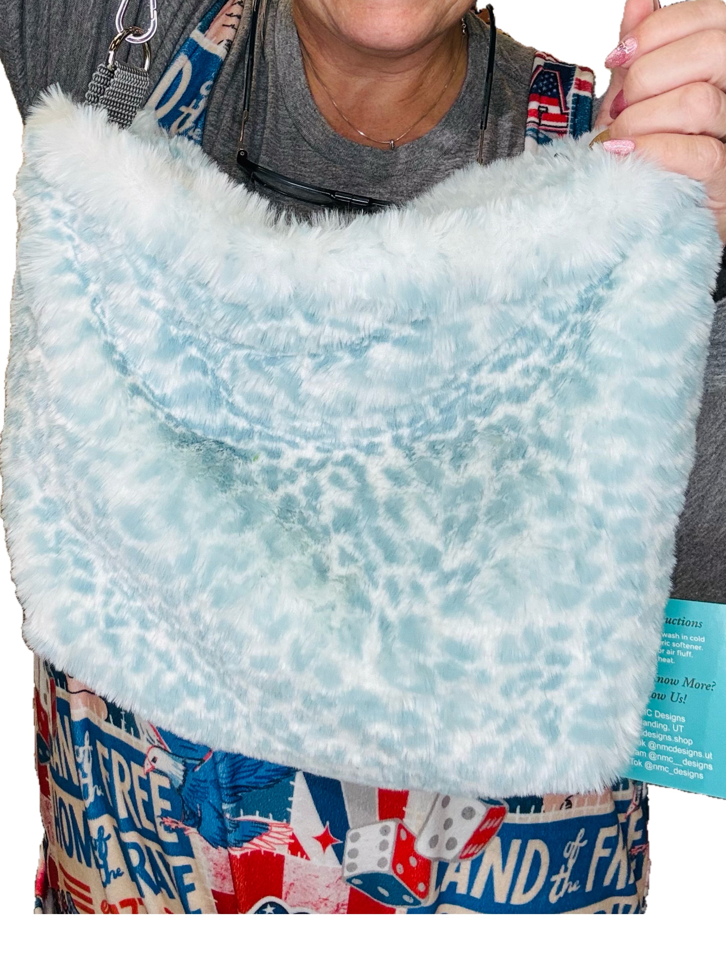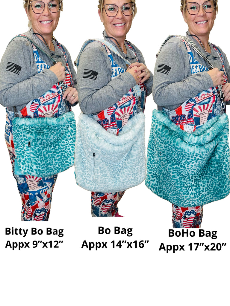 Handmade by NMC Designs! This bag is boujee boho and mommy bag all in one! Medium Size appx 9” T x 12” W. Adjustable strap from shoulder to long cross body. 1 Exterior Concealed Pocket and 2 interior large zippered pockets-and the inside liner is water resistant and wipeable! Spill your make-up that’s ok! Wipe it off. Have damp clothes? Throw them in! This will be your go to for everything and looking very cool at the same time. Machine was gentle cycle, cold light detergent, no fabric softener, hang to dry, no heat.