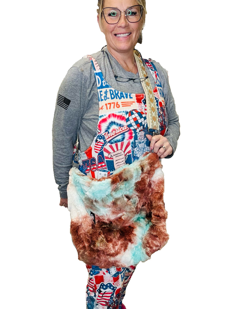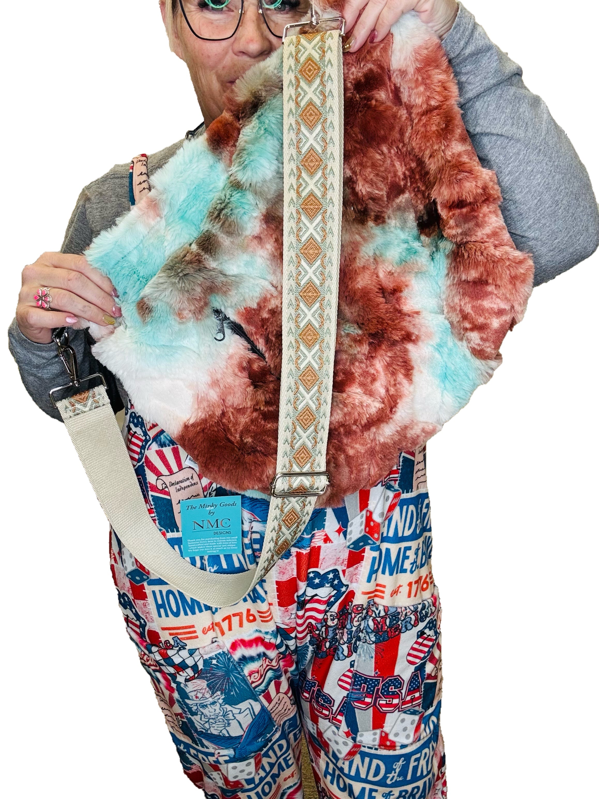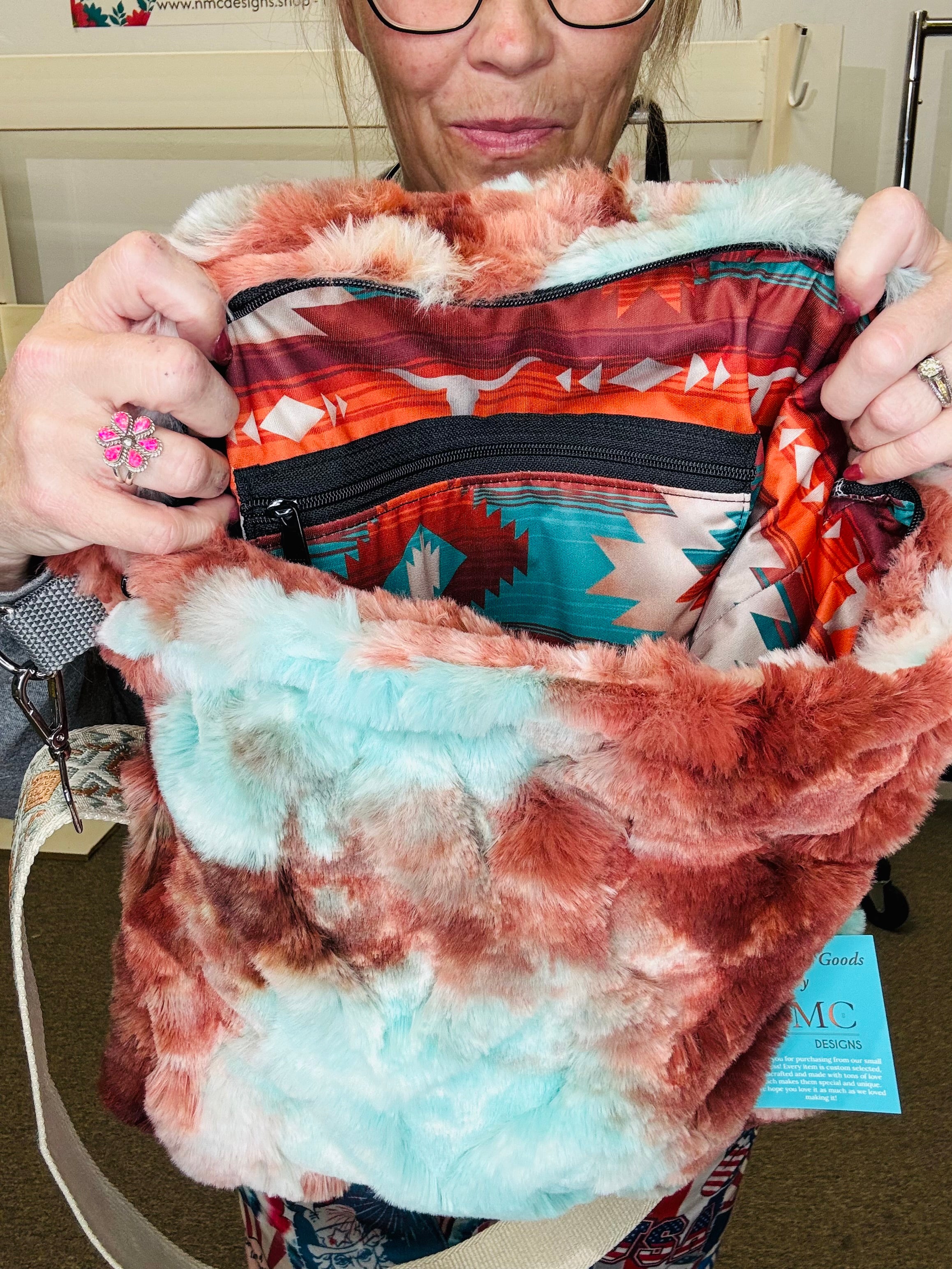 Jade Tie-Dye Cora Whispy is exclusive to NMC Designs! Handmade by NMC Designs! This bag is boujee boho and mommy bag all in one! Medium Size appx 14” T x 16” W. Matching mini zippered removeable bag-Adjustable strap from shoulder to long cross body. 1 Exterior Concealed Pocket and 2 interior large zippered pockets-and the inside liner is water resistant and wipeable! Spill your make-up that’s ok! Wipe it off. Have damp clothes? Throw them in! This will be your go to for everything and looking very cool at the same time. Machine was gentle cycle, cold light detergent, no fabric softener, hang to dry, no heat.