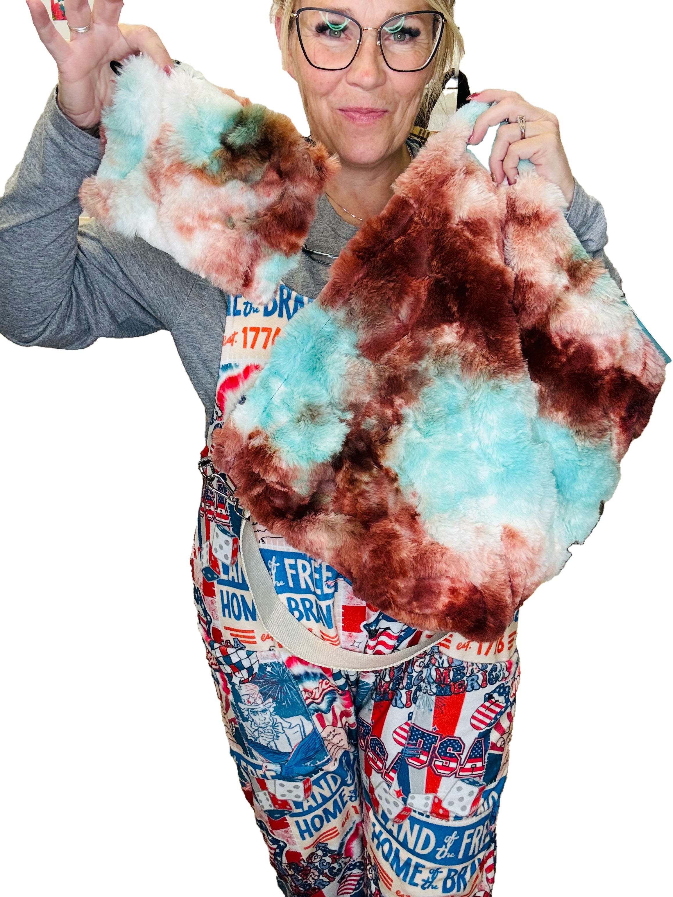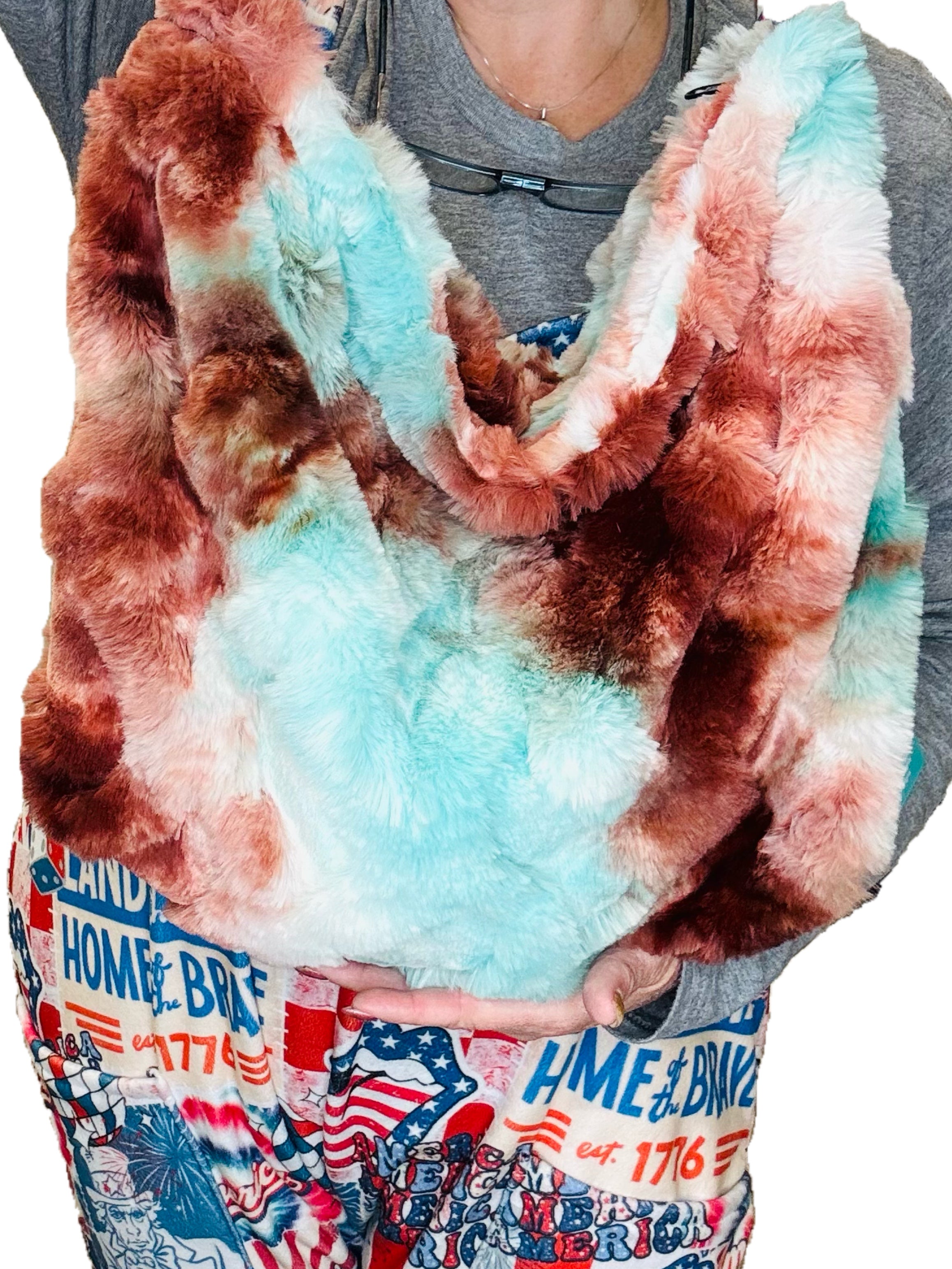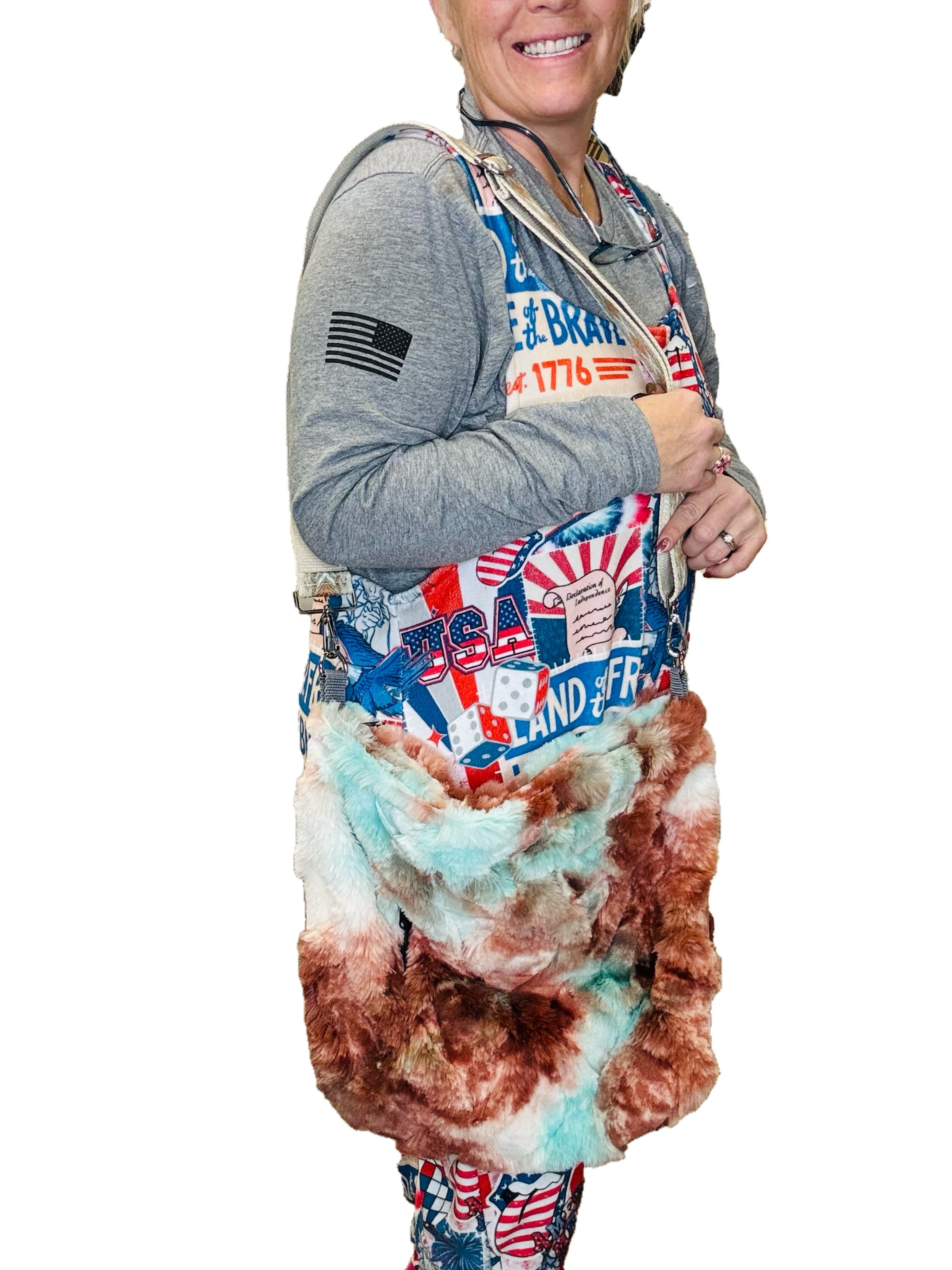Jade Tie-Dye Cora Whispy is exclusive to NMC Designs! Handmade by NMC Designs! This bag is boujee boho and mommy bag all in one! Medium Size appx 14” T x 16” W. Matching mini zippered removeable bag-Adjustable strap from shoulder to long cross body. 1 Exterior Concealed Pocket and 2 interior large zippered pockets-and the inside liner is water resistant and wipeable! Spill your make-up that’s ok! Wipe it off. Have damp clothes? Throw them in! This will be your go to for everything and looking very cool at the same time. Machine was gentle cycle, cold light detergent, no fabric softener, hang to dry, no heat.