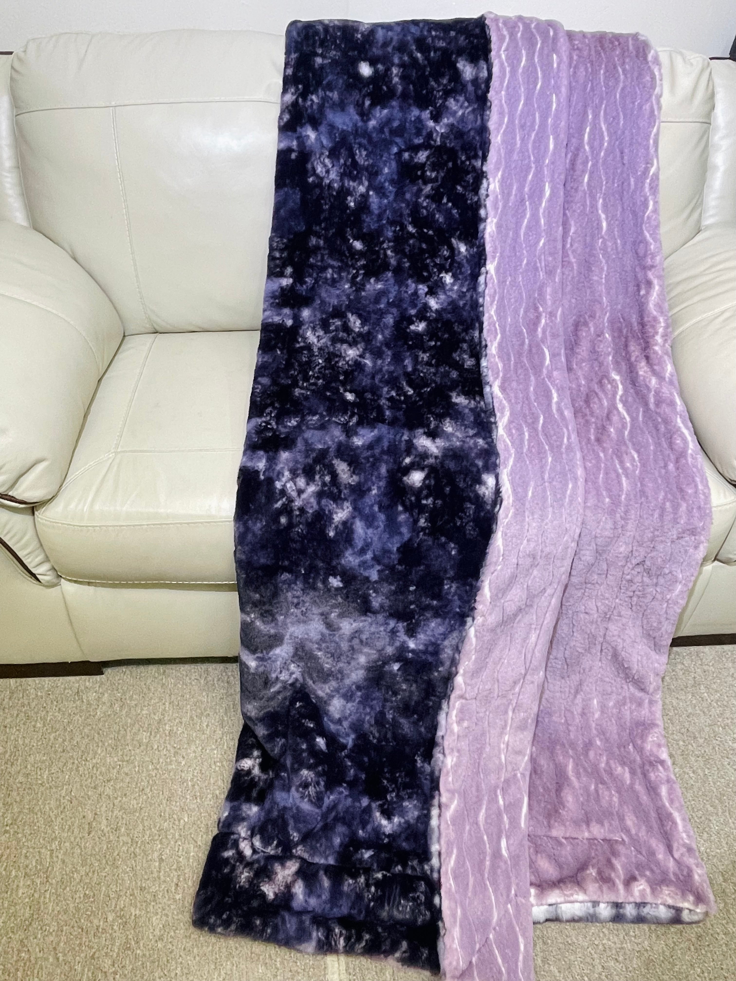 Medium weight. Super silky and fluffy, our blankets are handmade in Utah by NMC’s amazing seamstresses with 100% Polyester high quality Minky Fabric. Sizes are appx. Machine wash cold, no fabric softener, hang dry or air fluff, no heat.