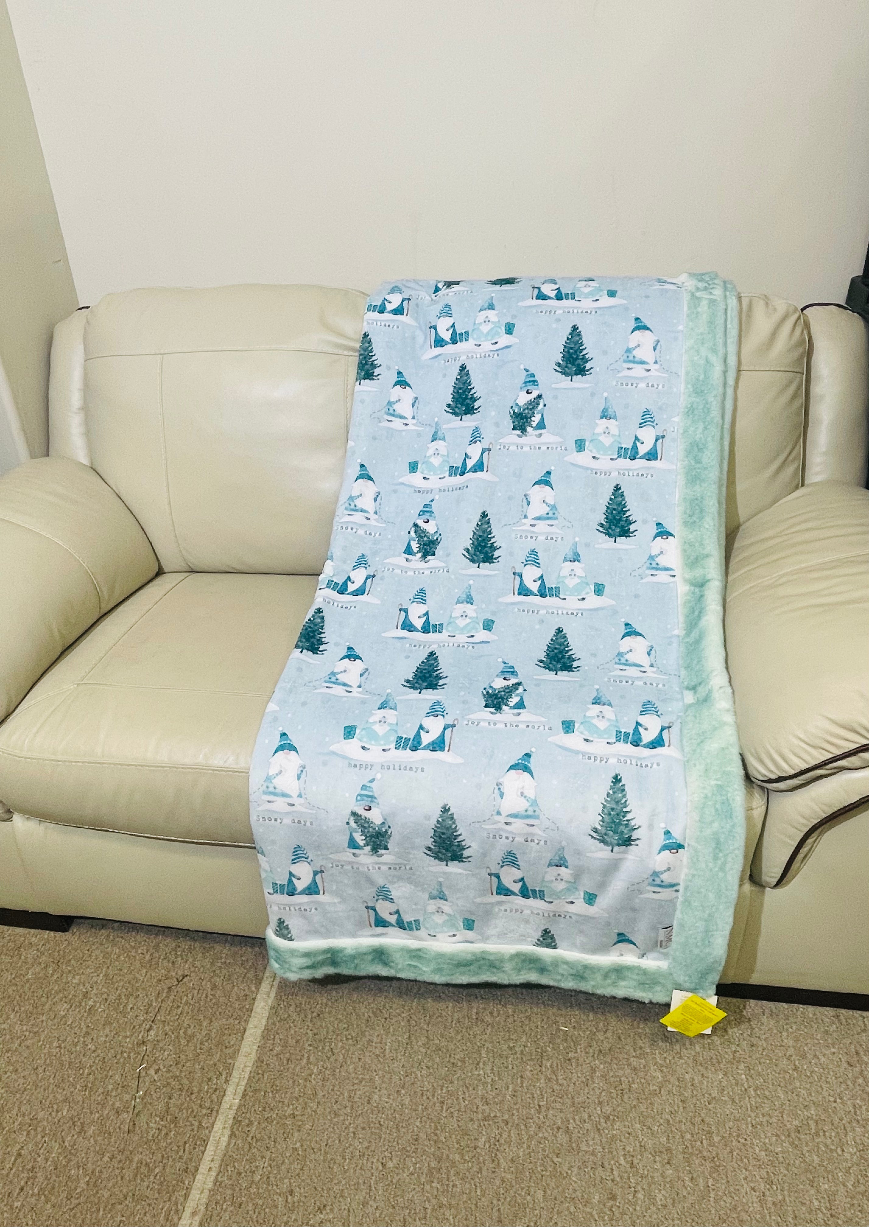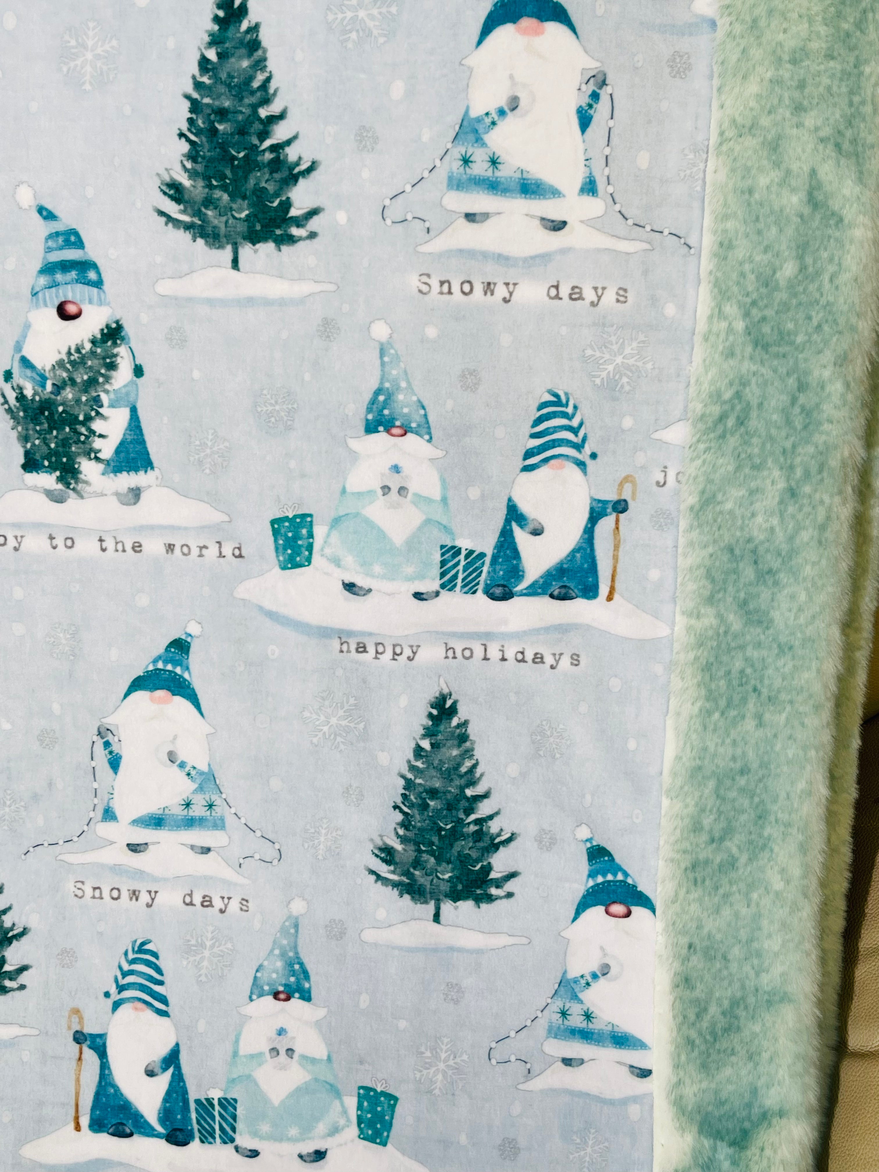 Christmas Gnomes Print/Agave Glazed Encore -Adult bordered 55”x69” appx
