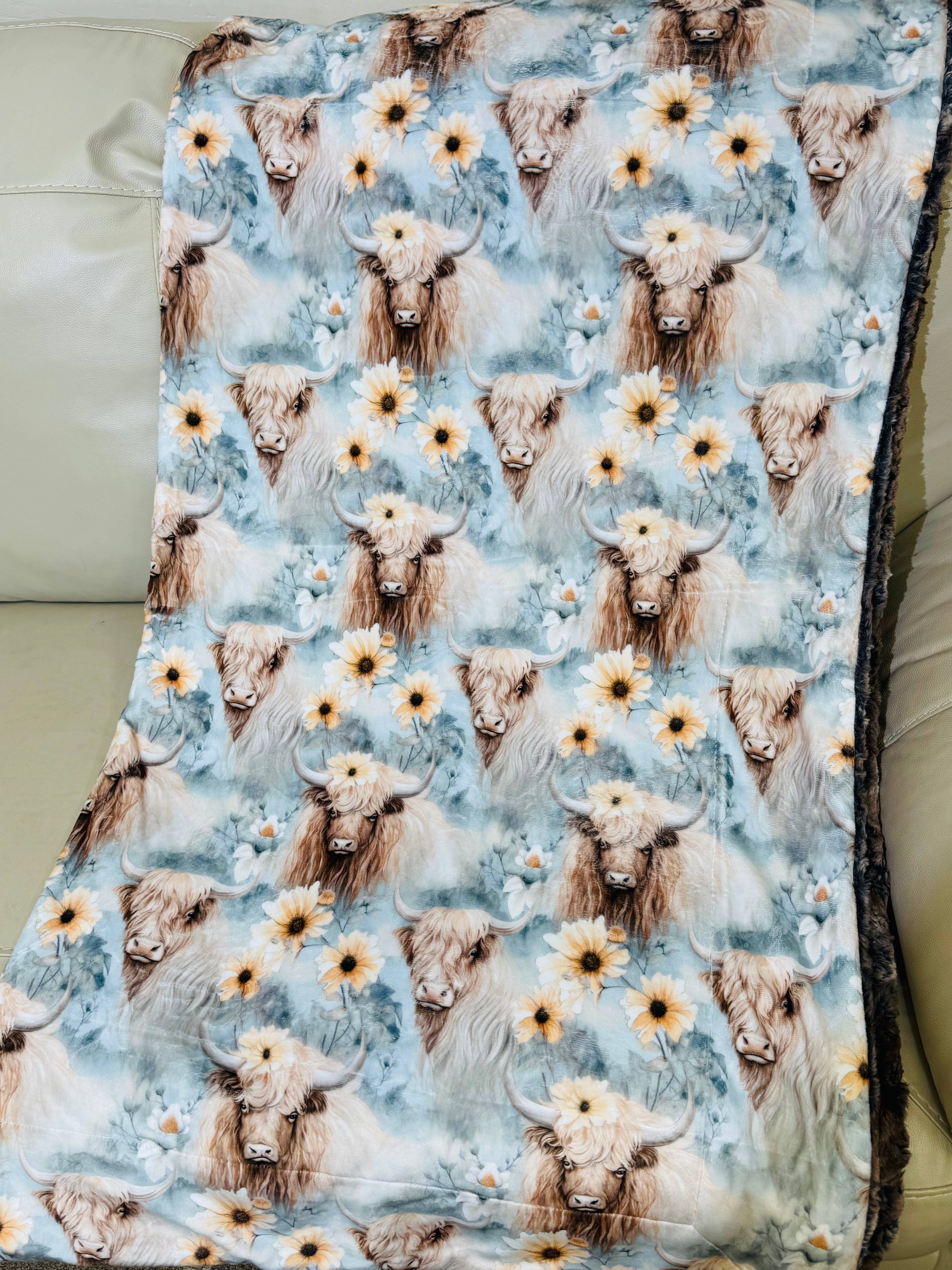 Elegant Highland Cows/Driftwood Wild Rabbit-Large Throw 60”X60” appx