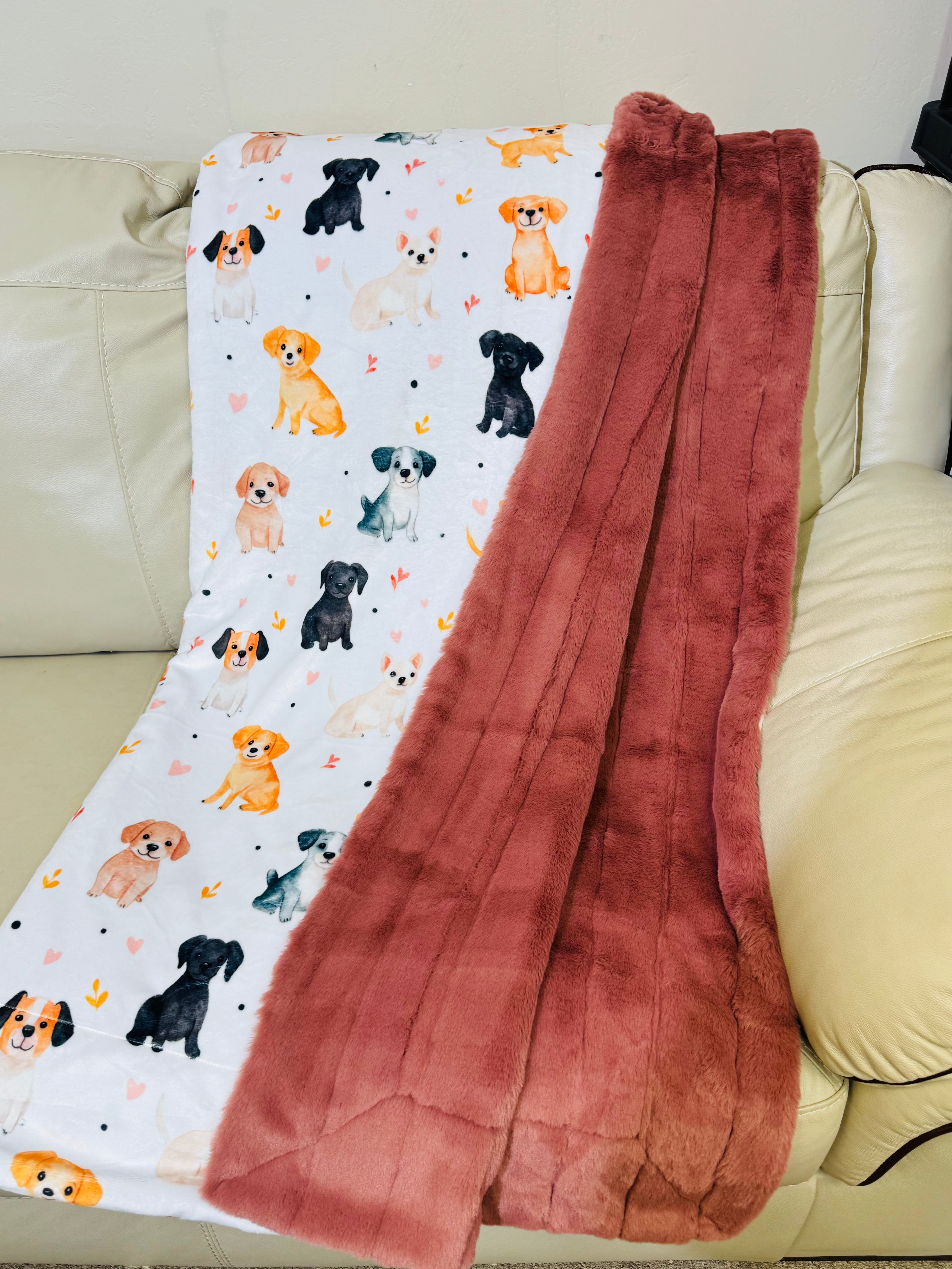 Puppy print/Cedarwood Sydney-Large Throw 60”X60” appx