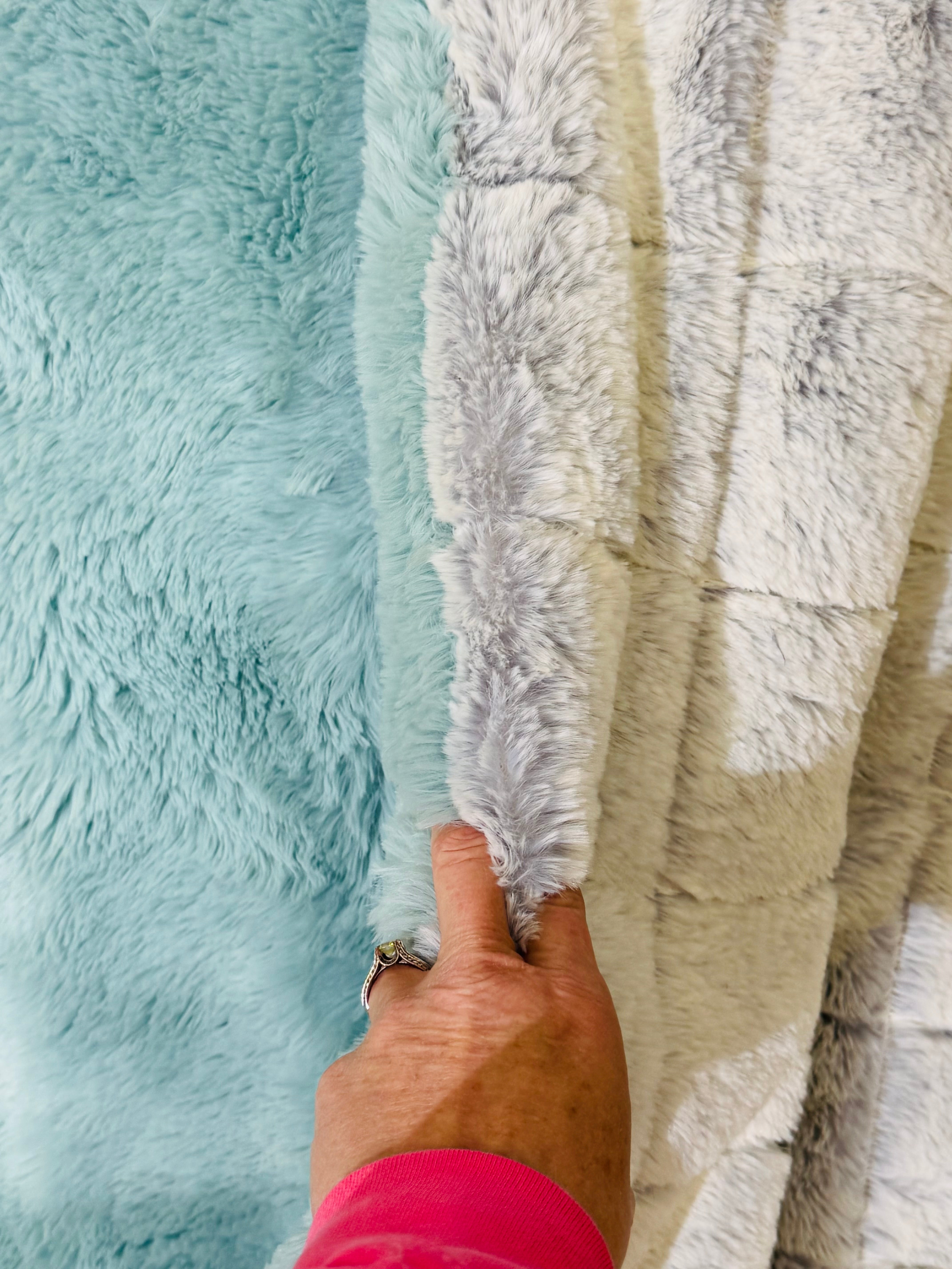 Medium weight, super silky and fluffy, our blankets are handmade in Utah by NMC’s amazing seamstresses with 100% Polyester high quality Minky Fabric. Bordered blankets have the backing fabric that wraps around the front and adds a statement. Sizes are appx. Machine wash cold, no fabric softener, hang dry or air fluff, no heat. Free shipping in the lower 48 states on all blankets!