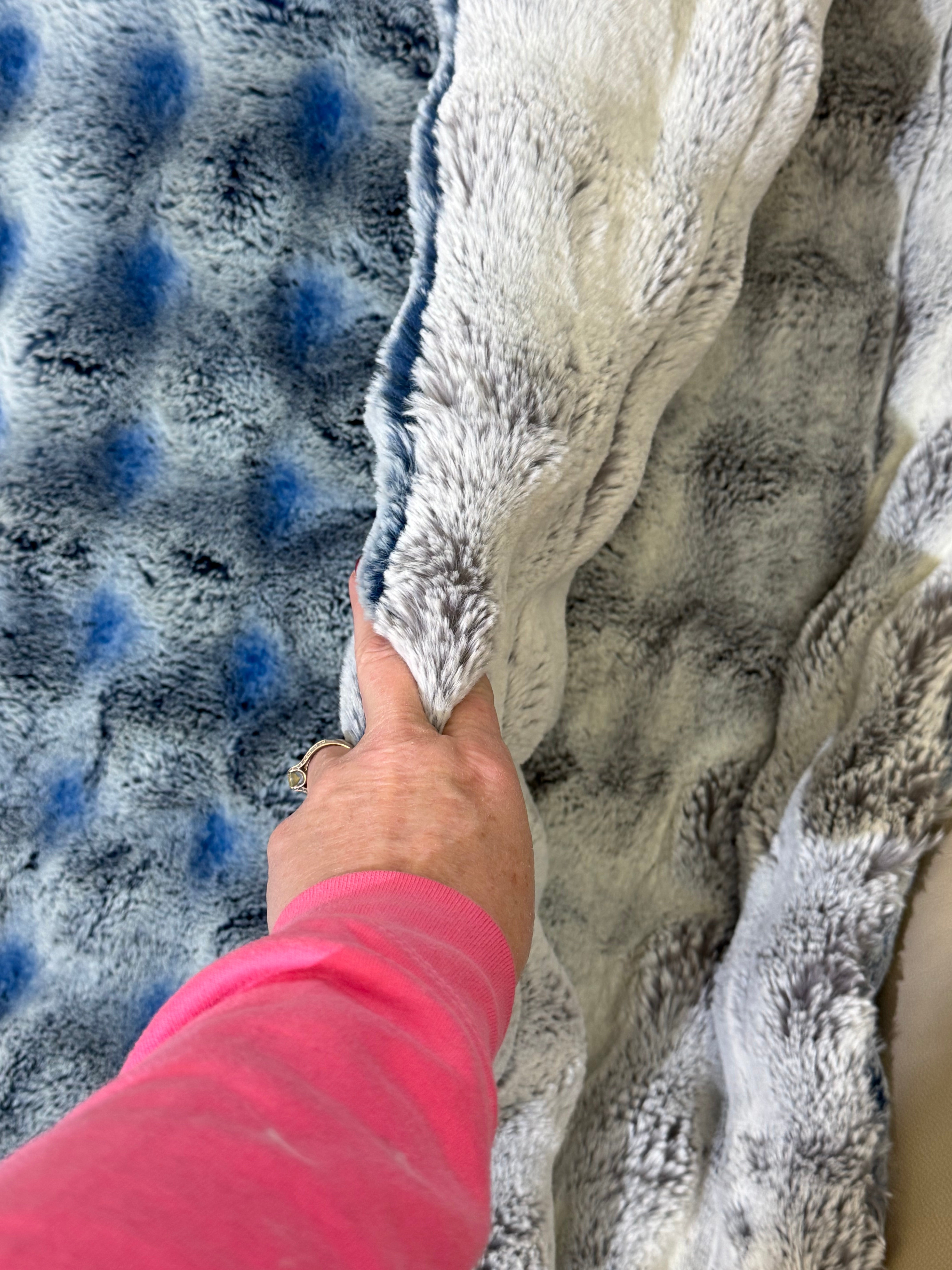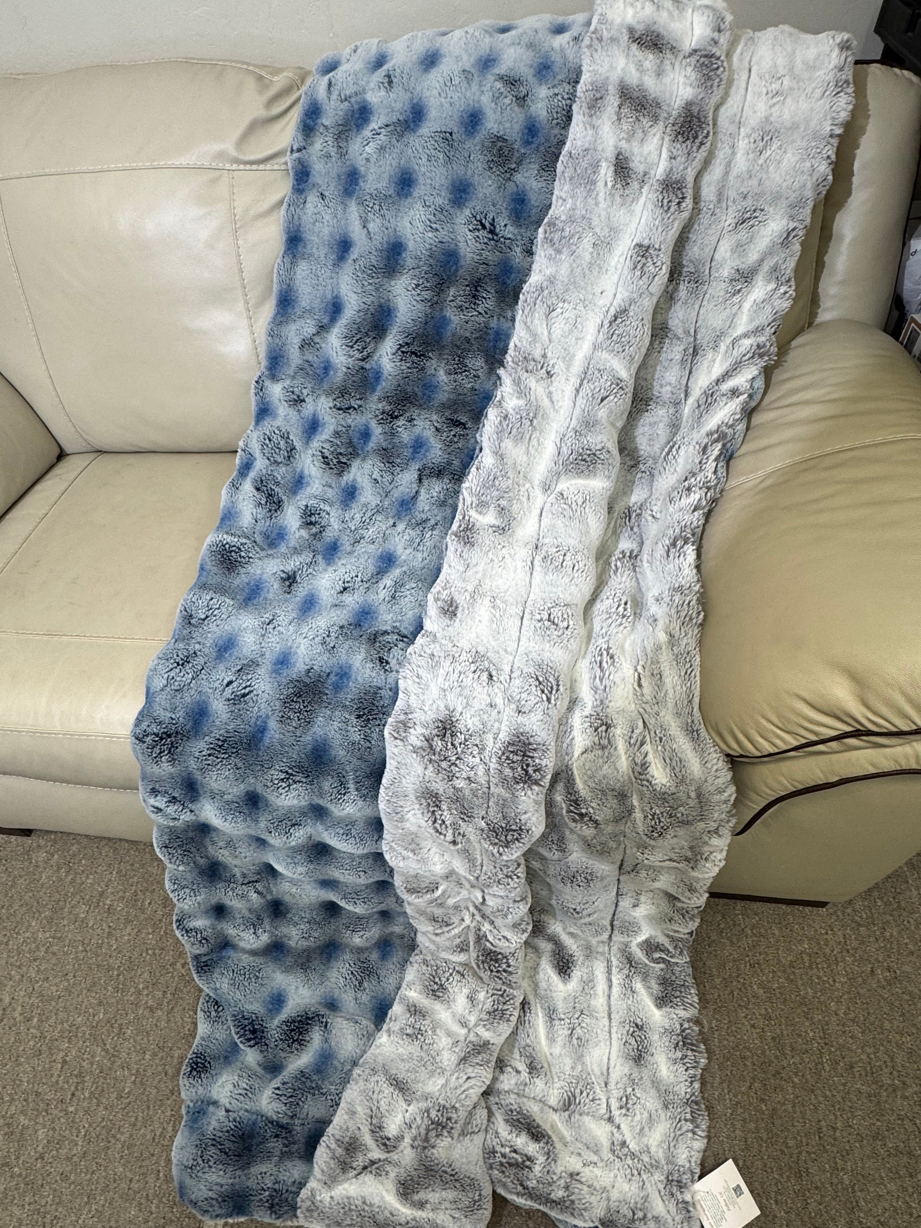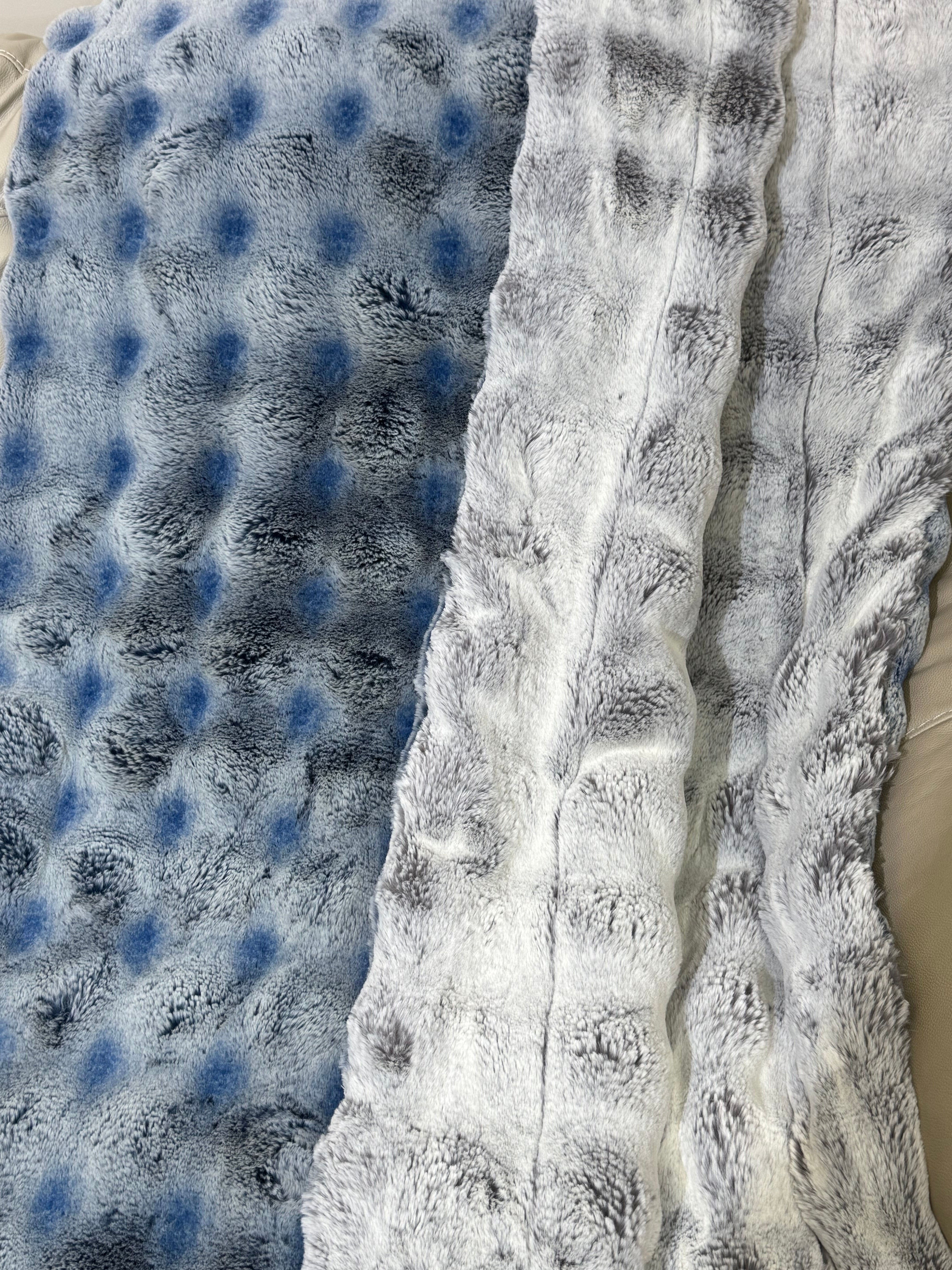 Heavy weight. Super silky and fluffy, our blankets are handmade in Utah by NMC’s amazing seamstresses with 100% Polyester high quality Minky Fabric. Sizes are appx. Machine wash cold, no fabric softener, hang dry or air fluff, no heat.