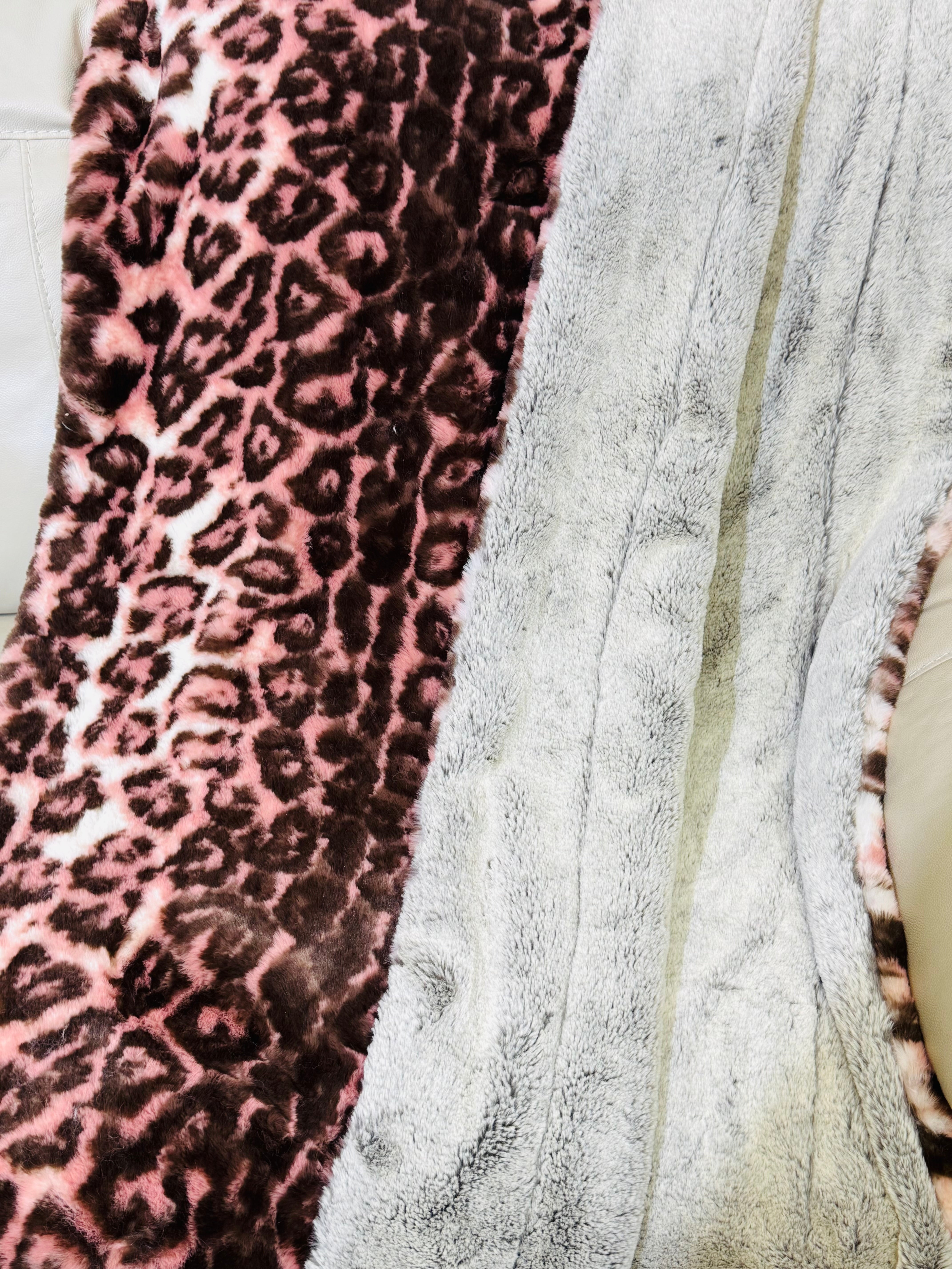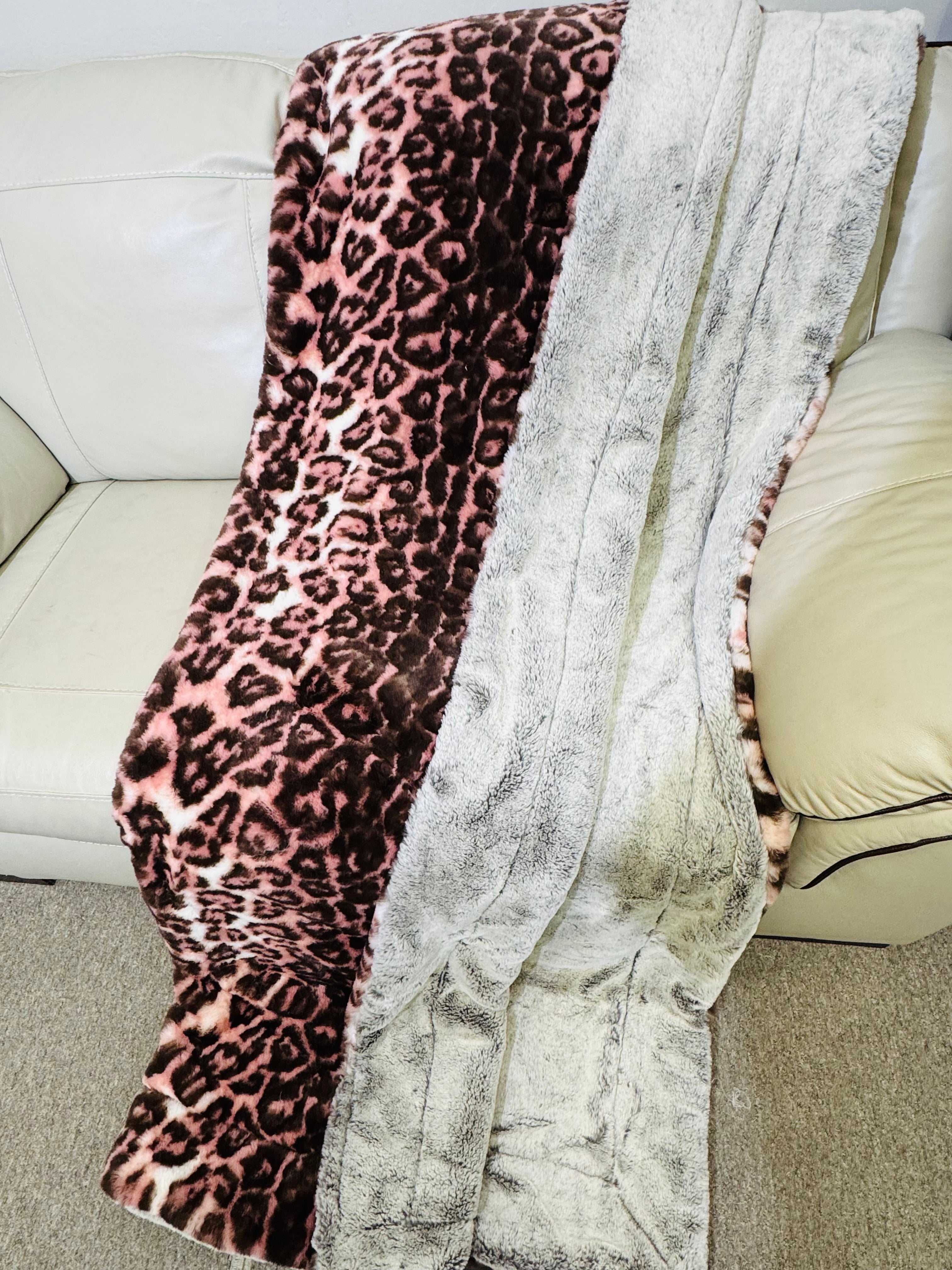 Adobe Blush Cheetah is exclusive to NMC Designs. Medium weight. Super silky and fluffy, our blankets are handmade in Utah by NMC’s amazing seamstresses with 100% Polyester high quality Minky Fabric. Sizes are appx. Machine wash cold, no fabric softener, hang dry or air fluff, no heat.