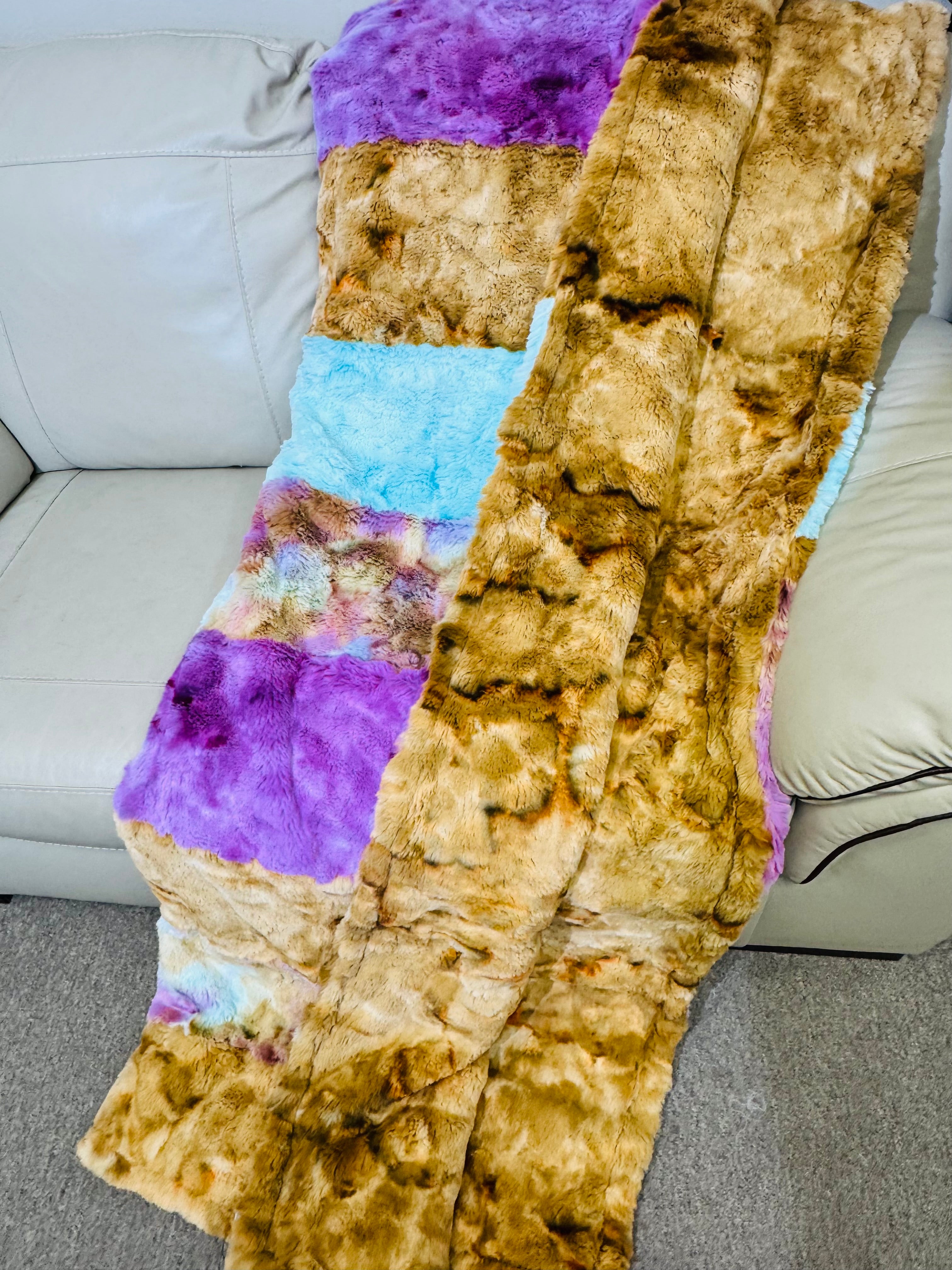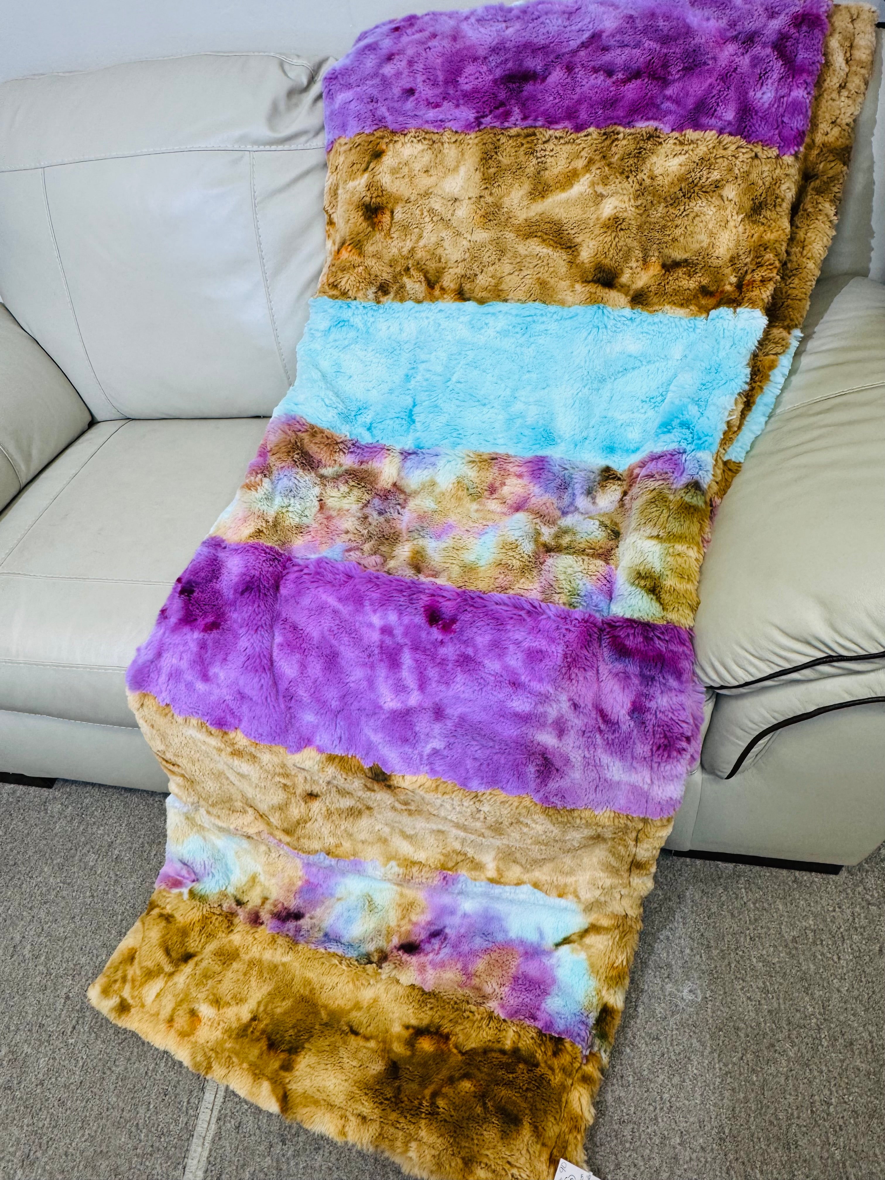 Heavy weight. One of the heaviest most plush blankets you can buy. Fabrics are all exclusive to NMC Designs. Super silky and fluffy, our blankets are handmade in Utah by NMC’s amazing seamstresses with 100% Polyester high quality Minky Fabric. Sizes are appx. Machine wash cold, no fabric softener, hang dry or air fluff, no heat.