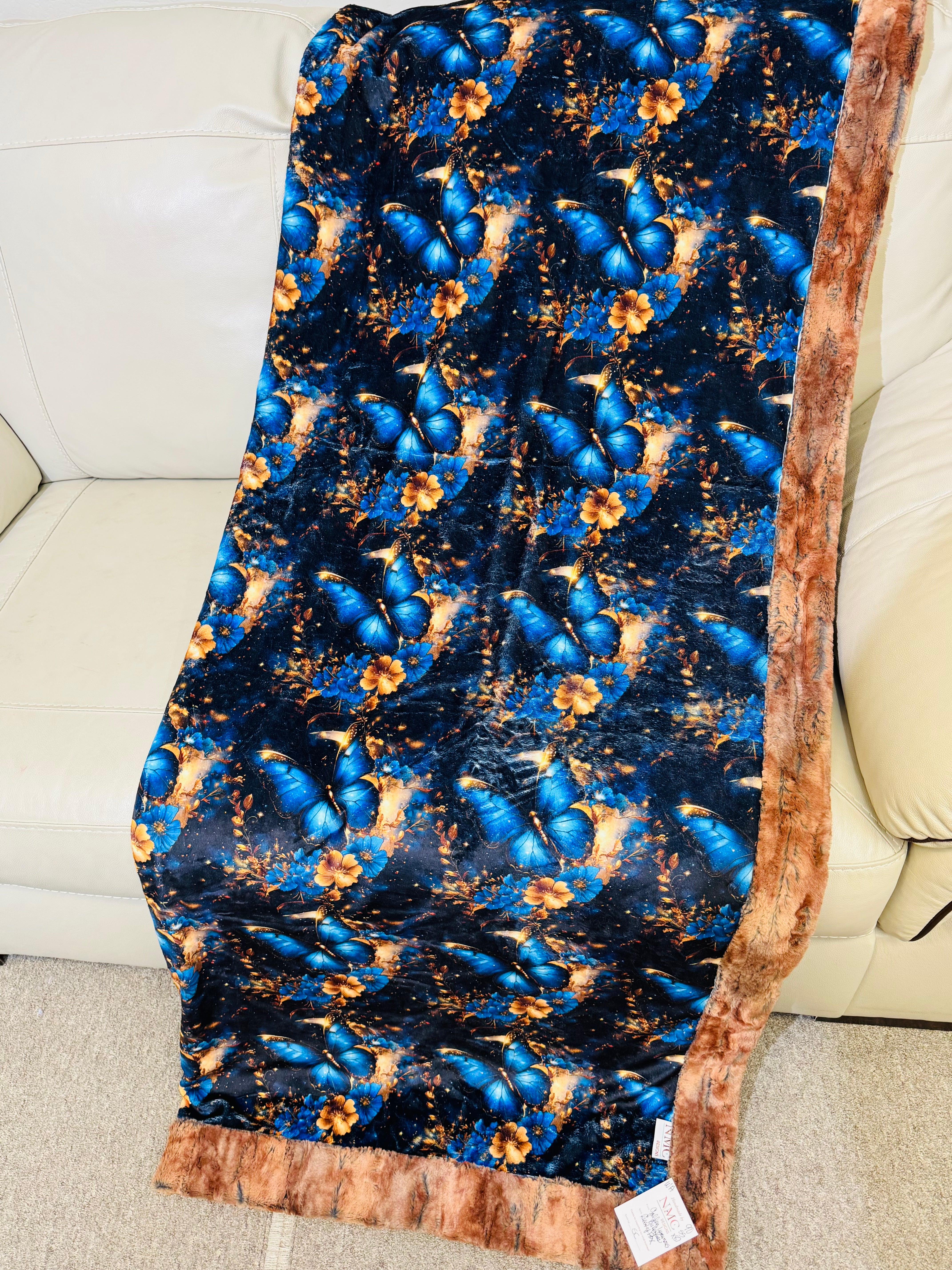 Golden Luminous Butterflies/Rusty Fox-Mega bordered 55”x87” Appx