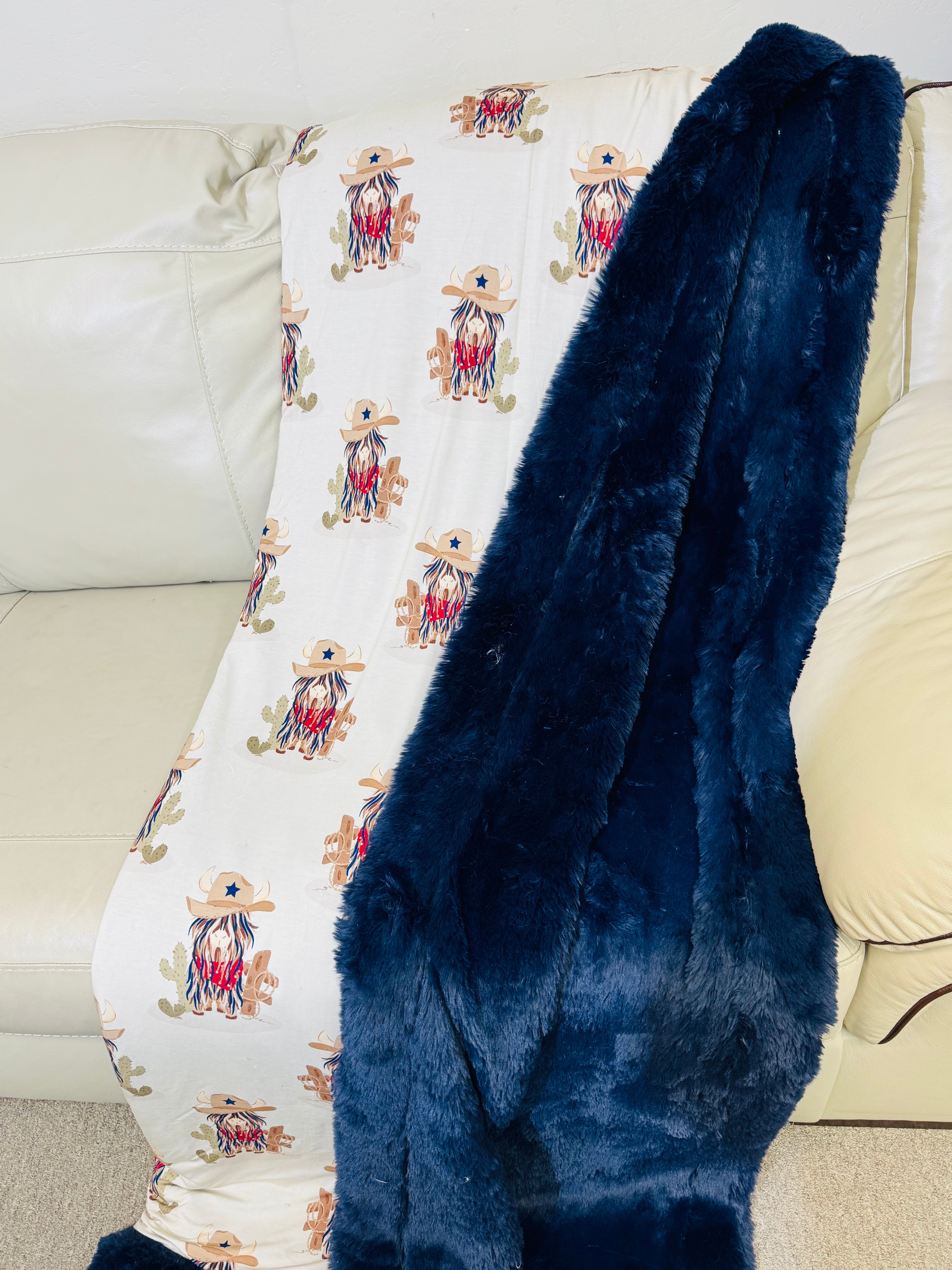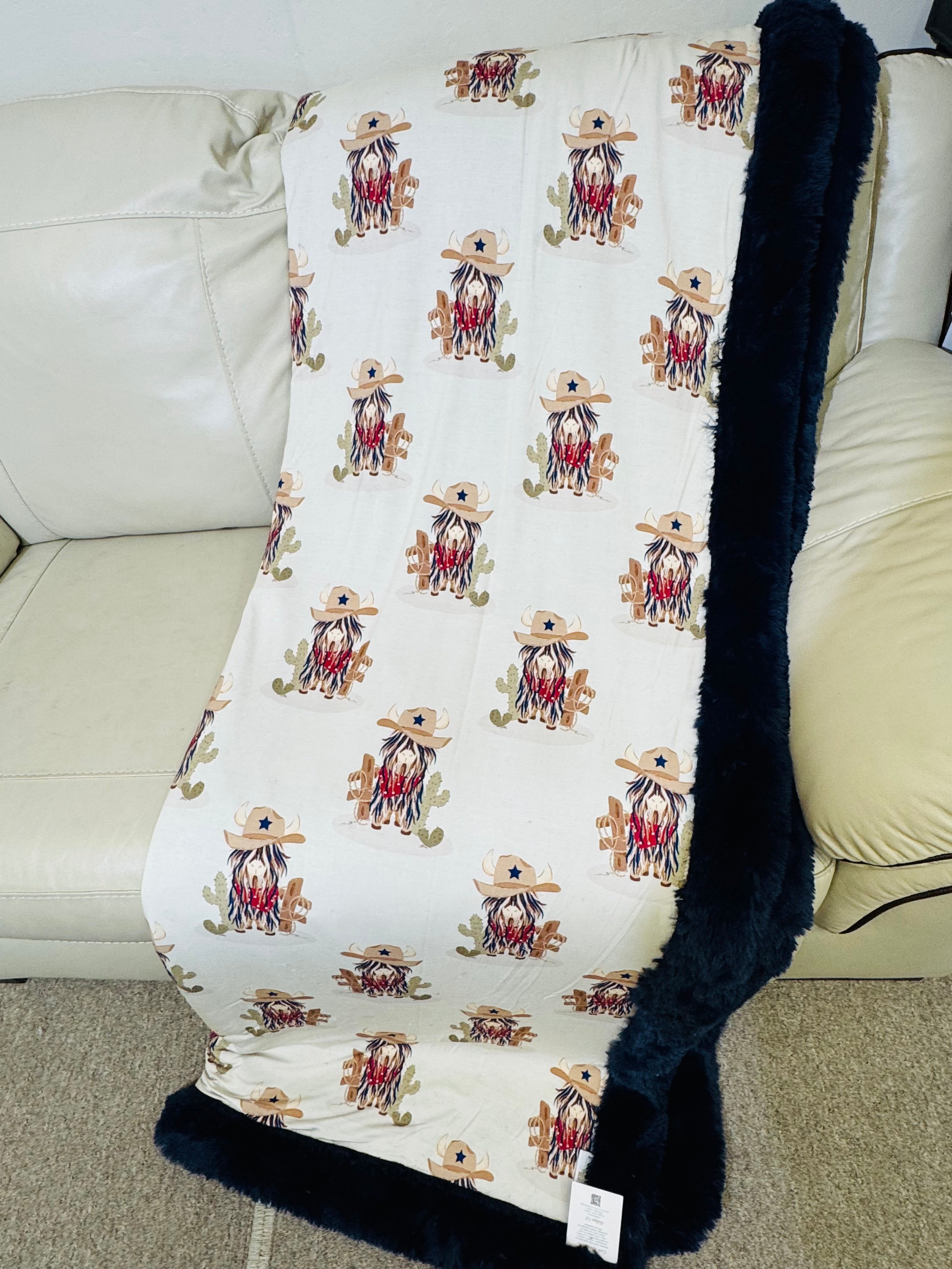 Medium weight, super silky and ultra fluffy, bordered blankets, are an added statement piece with the backing wrapped around the edge. Handmade in Utah by NMC’s amazing seamstresses with 100% Polyester high quality Minky Fabric. Sizes are appx. Machine wash, cold, no fabric softener, air or air fluff to dry, no heat. Free shipping on all blankets in the lower 48 states.