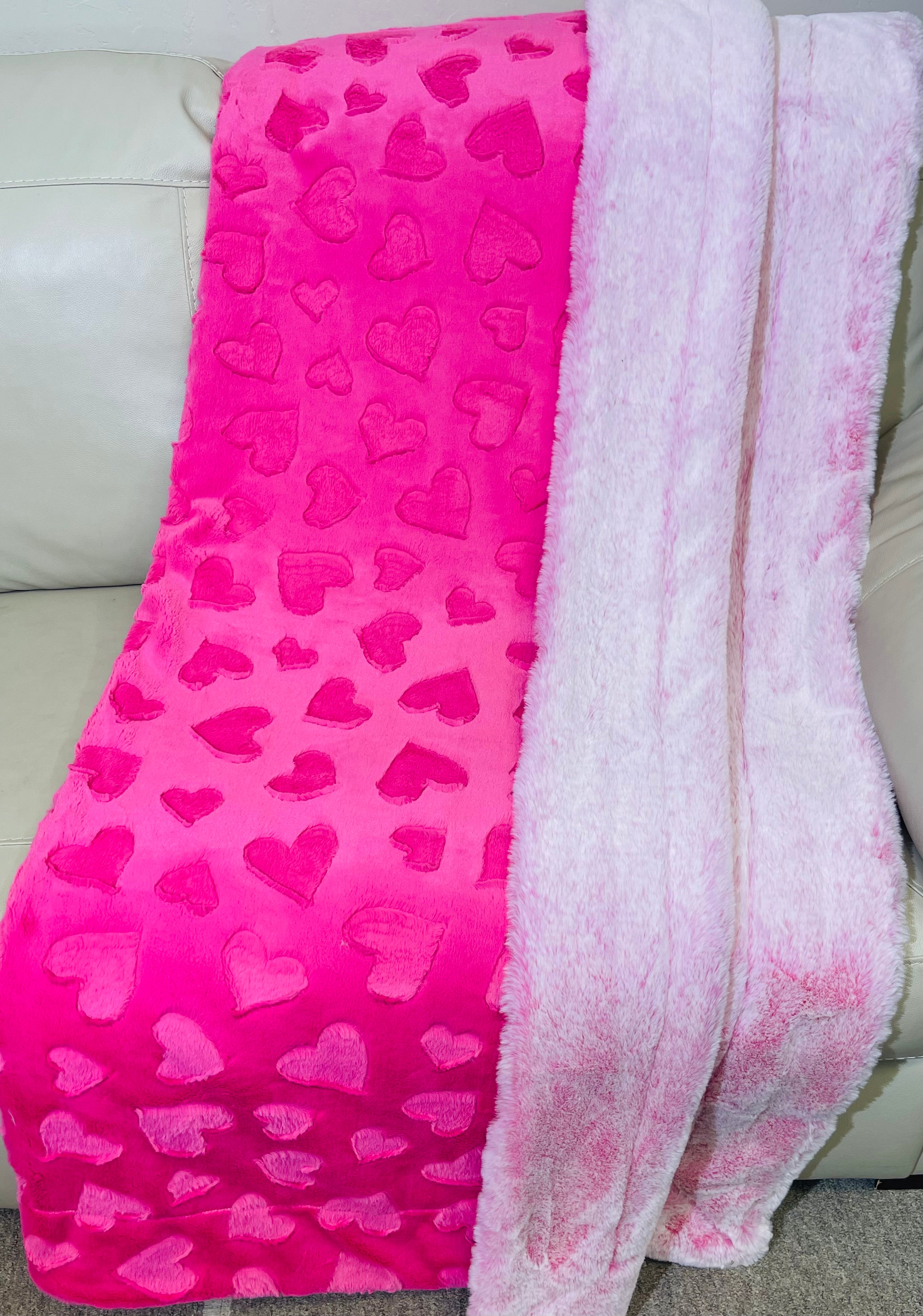Fuchsia Hearts/Neon Pink Frosted Whispy-Adult 60”x72” appx