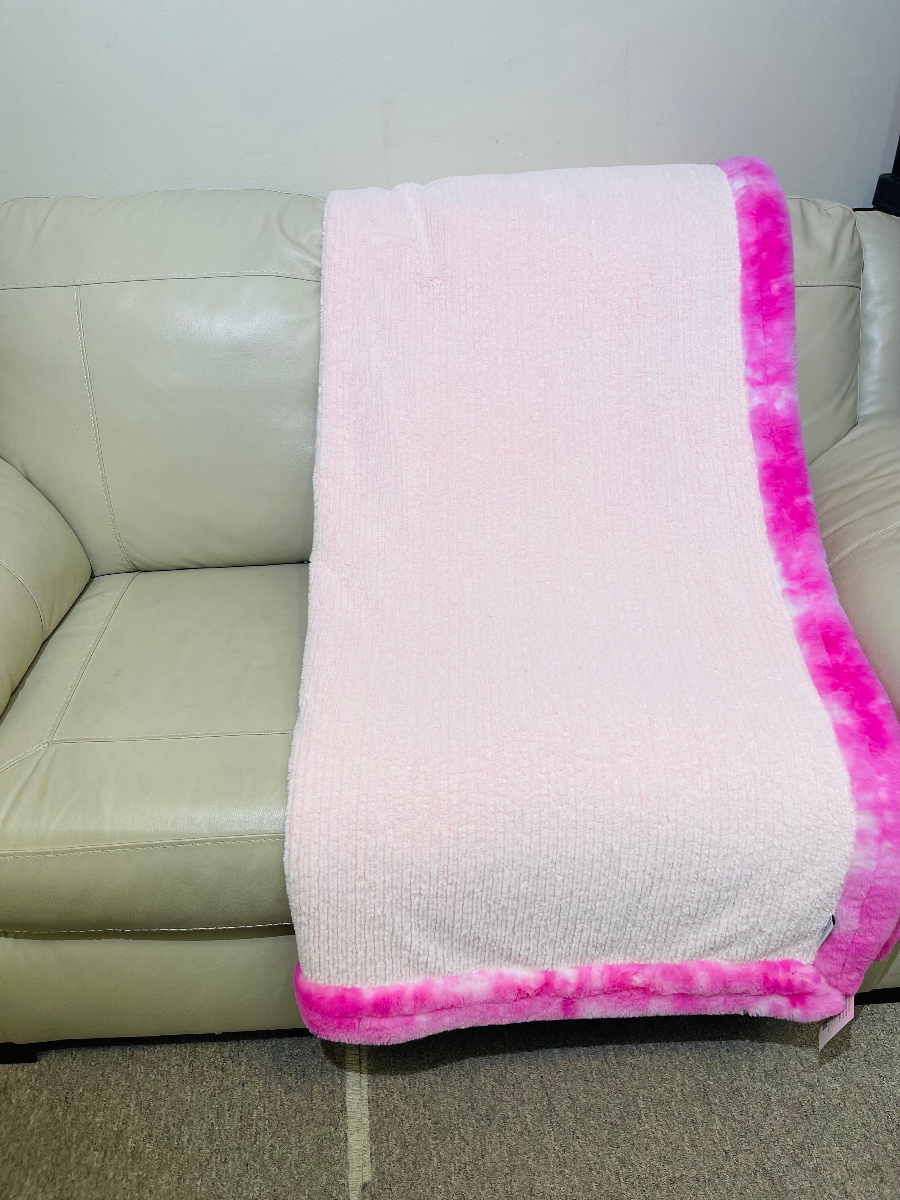 Ice Pink Weave/Rose Pink Tonal Whispy-Adult bordered 55”x69” appx