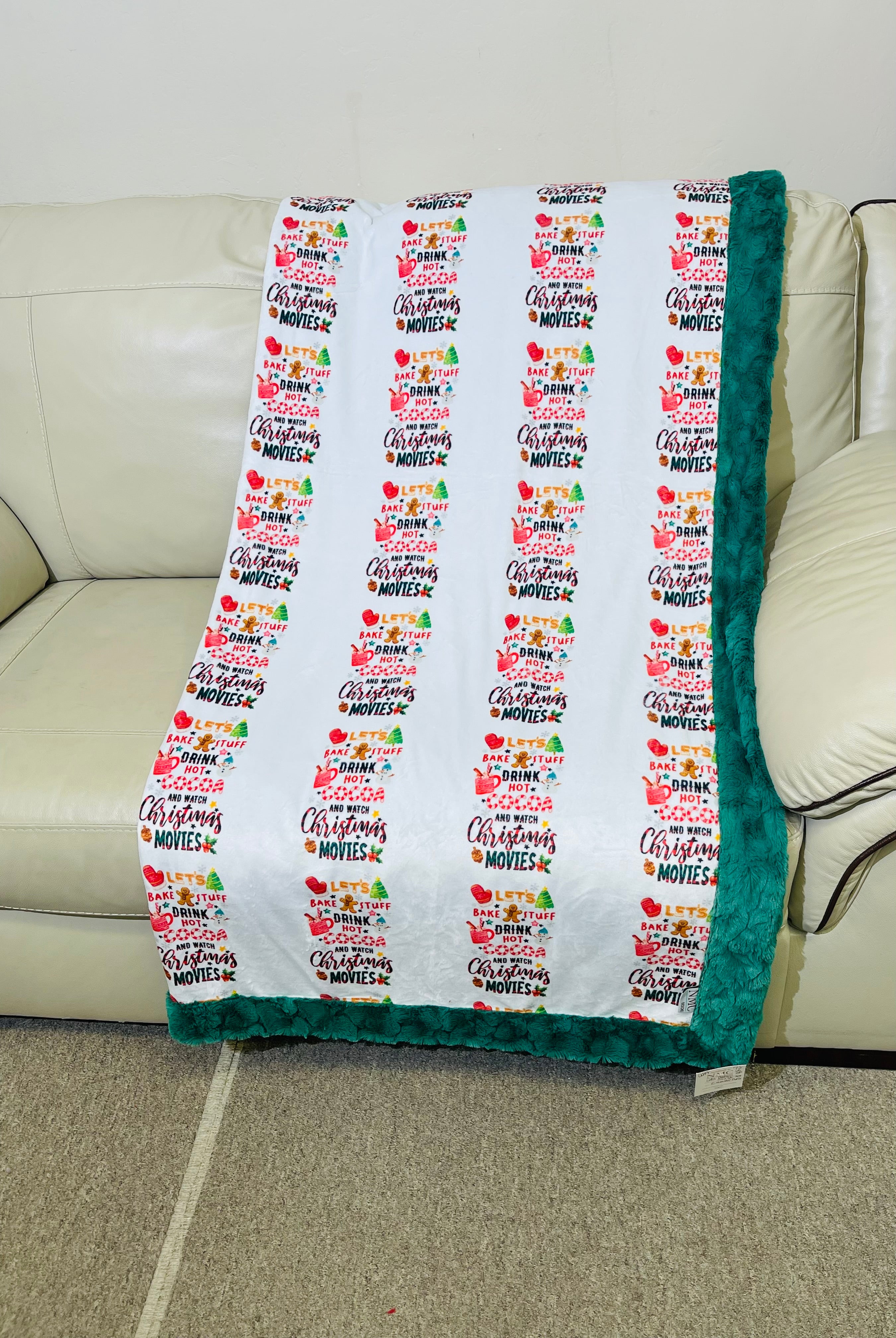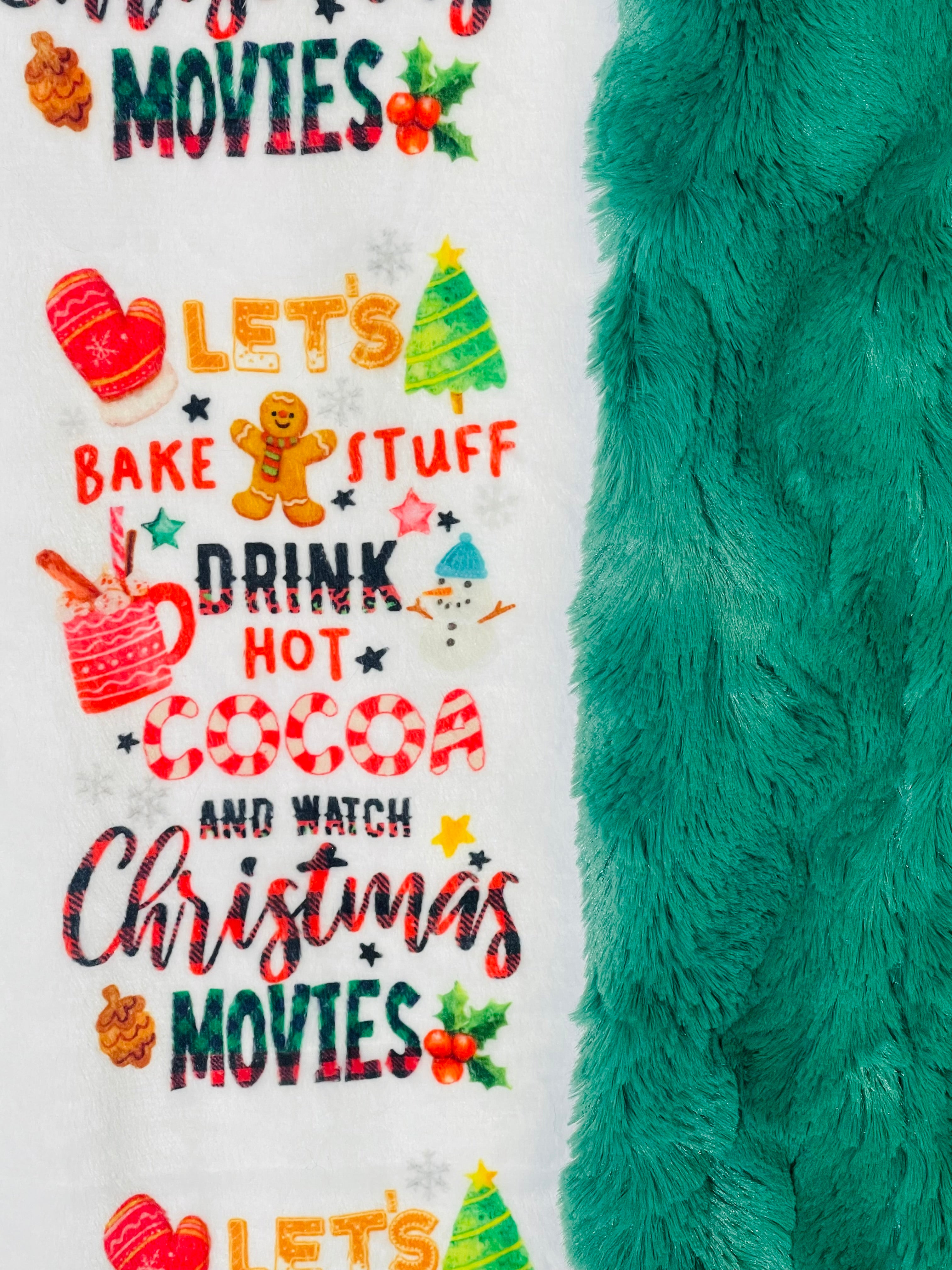 Let’s Bake Stuff Print/Emerald Bella-Adult bordered 55”x69” appx
