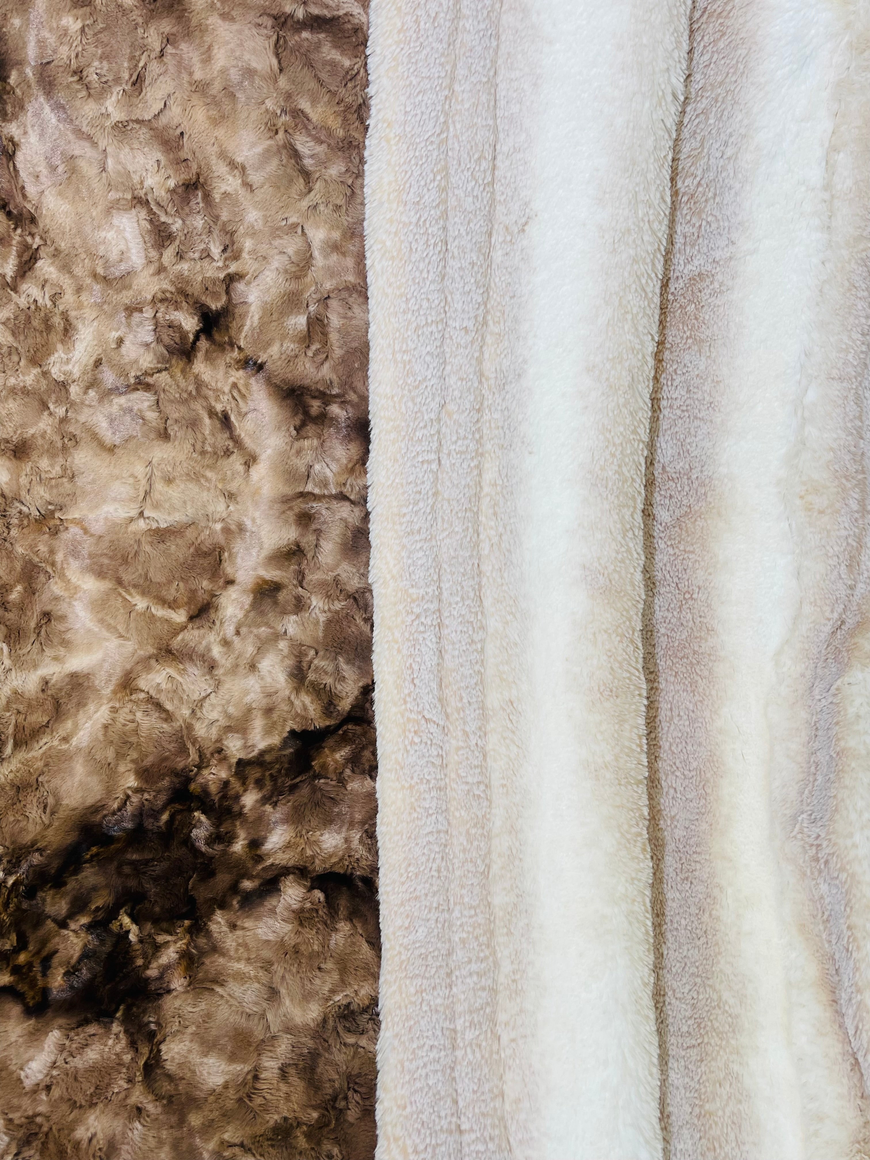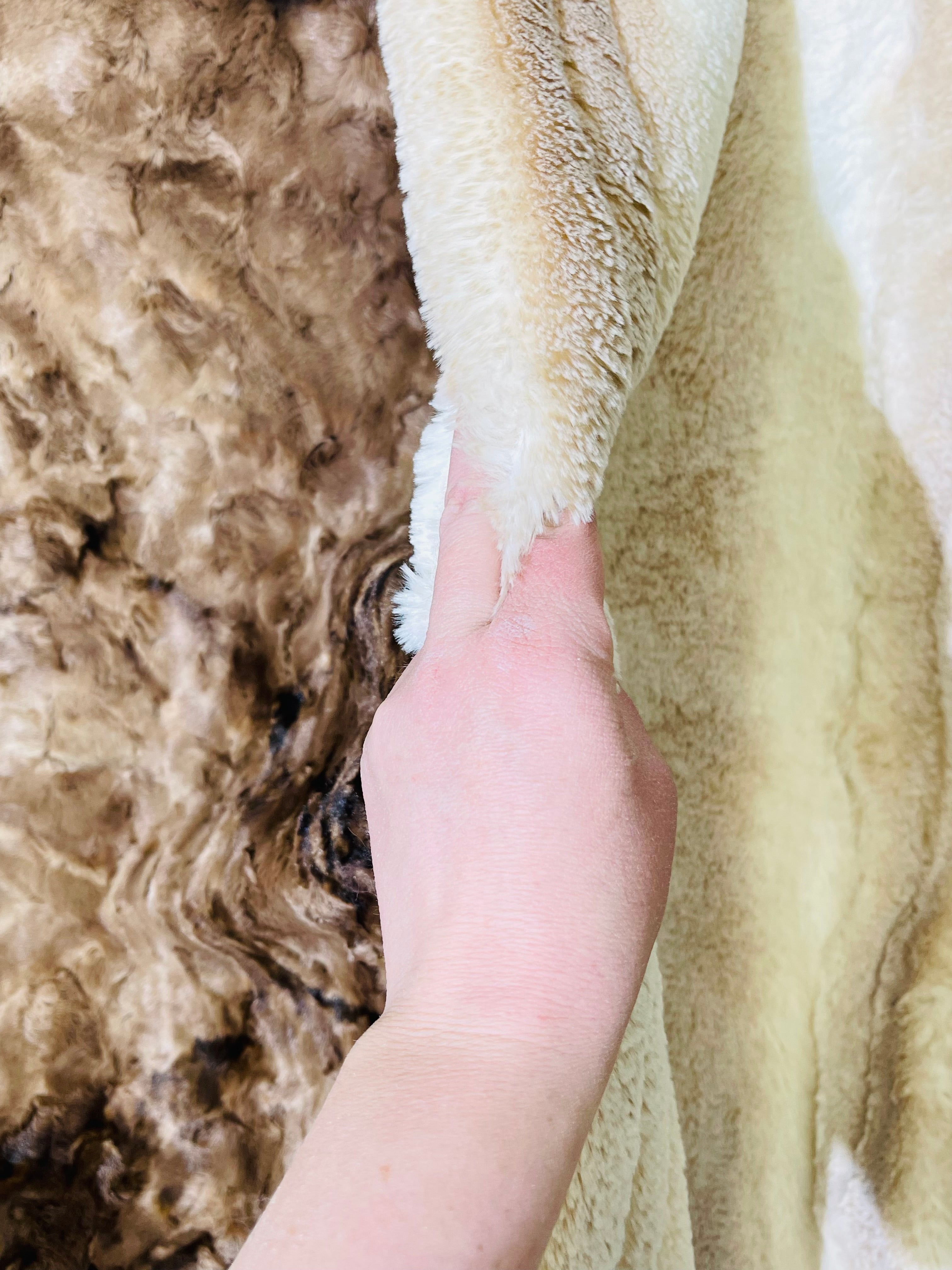Pinecone Galaxy/Butterscotch Frosted Arctic Chinchilla-Large Throw bordered 55”x57” appx