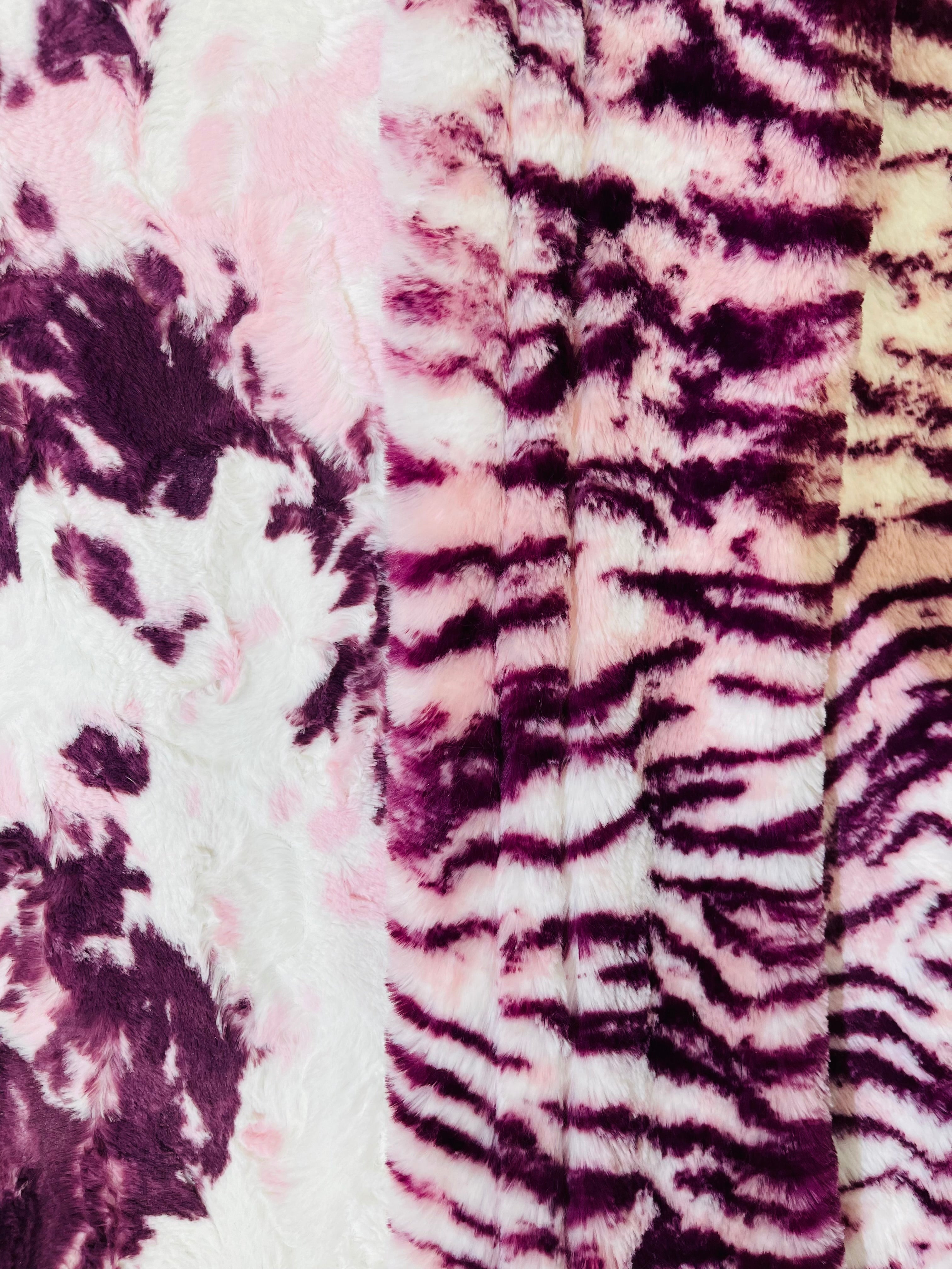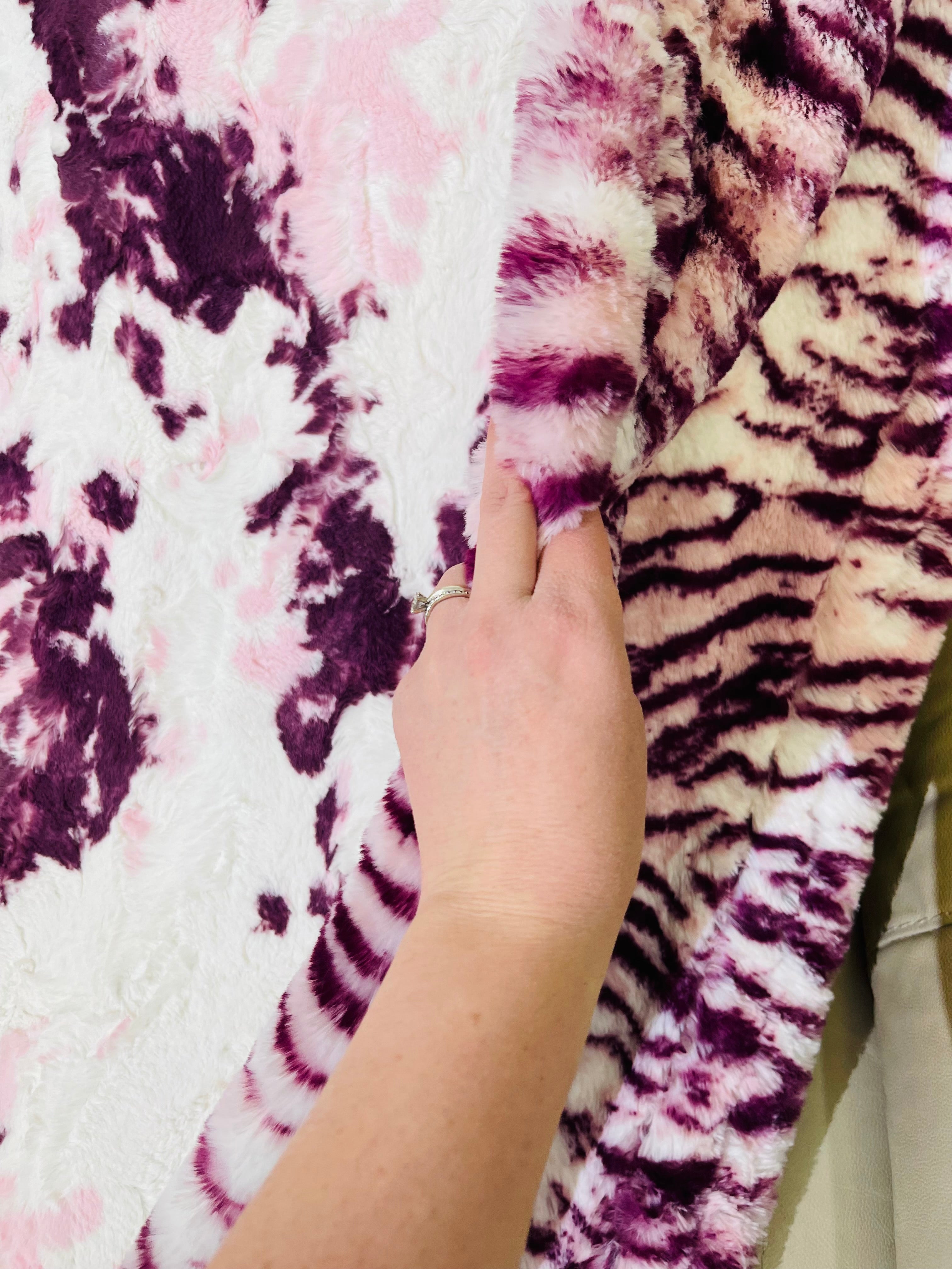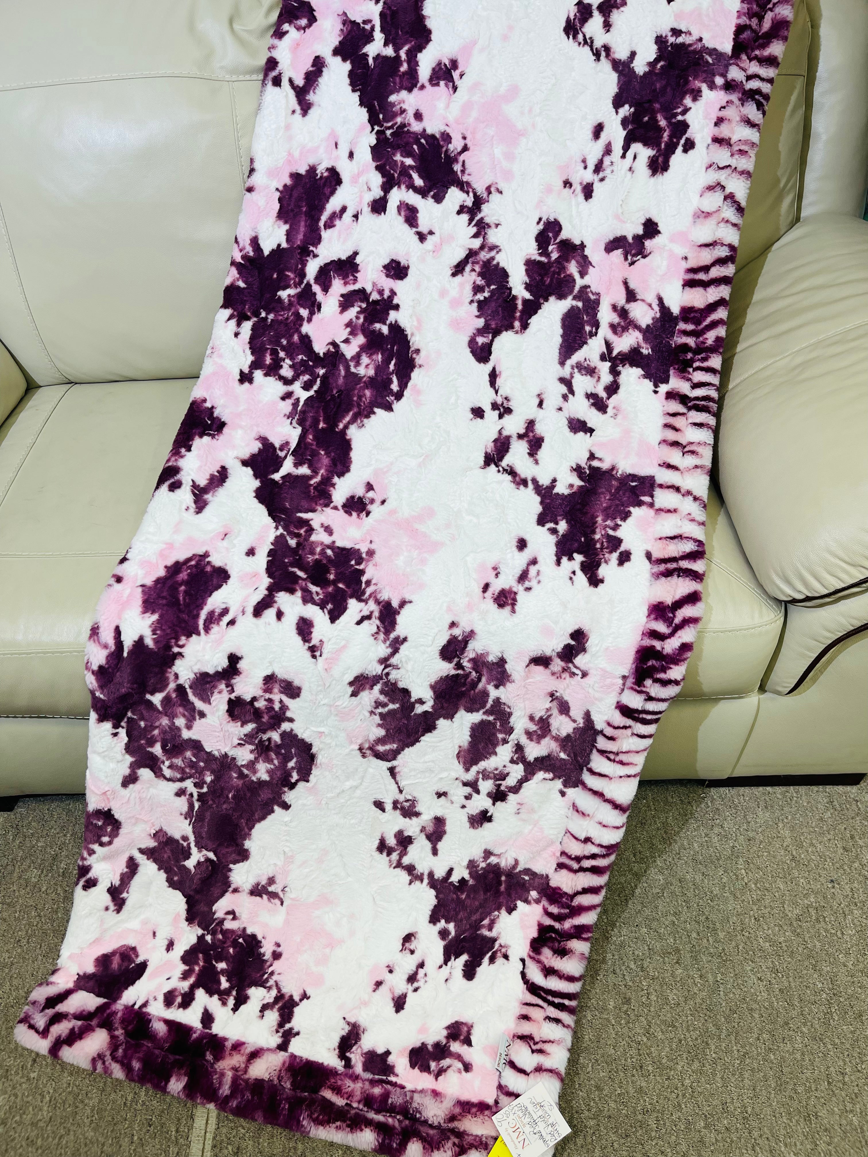 Red Violet Spotted Appaloosa on Red Violet Tiger Stripe Whispy- Mega bordered 55”x87” Appx